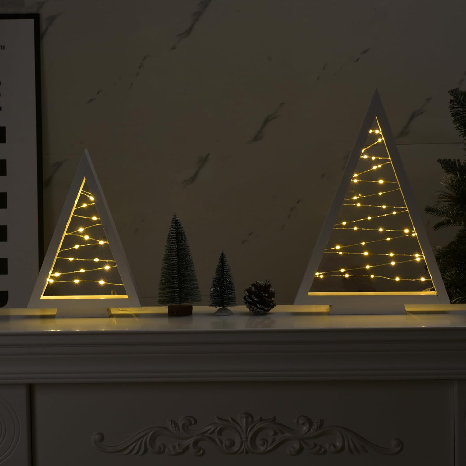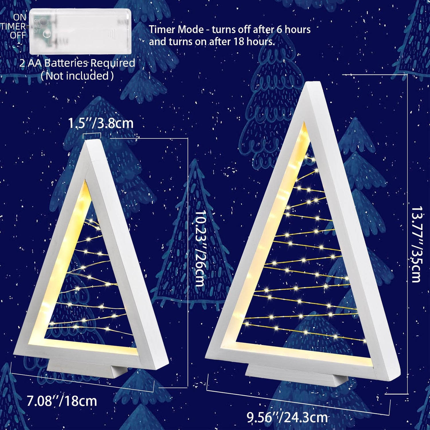 - HIGH QUALITY MATERIALS - The body of each tabletop Christmas tree is made of wood, smooth and burr-free, not easy to break, the white color is more in line with the atmosphere of your home. Not only suitable for daily home decoration, the LED string lights have a long life and can be stored and used for a long time. Meet the festive atmosphere of Christmas.