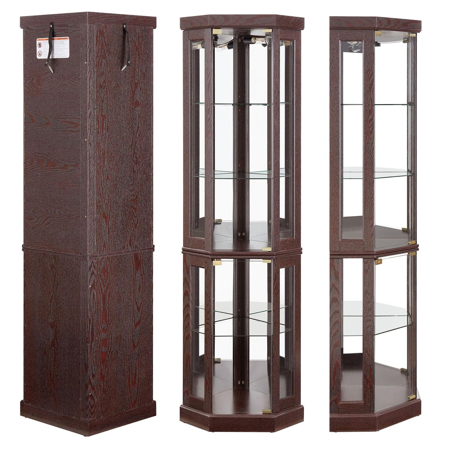 - Convenient Assembly and Size: With dimensions of 15.31" L x 15.31" W x 69.84" H and a weight of 63.14 lbs, this glass cabinet provides a compact yet spacious solution for your display needs. Assembly is hassle-free, but remember to remove the protective film on the back panel before setting up.