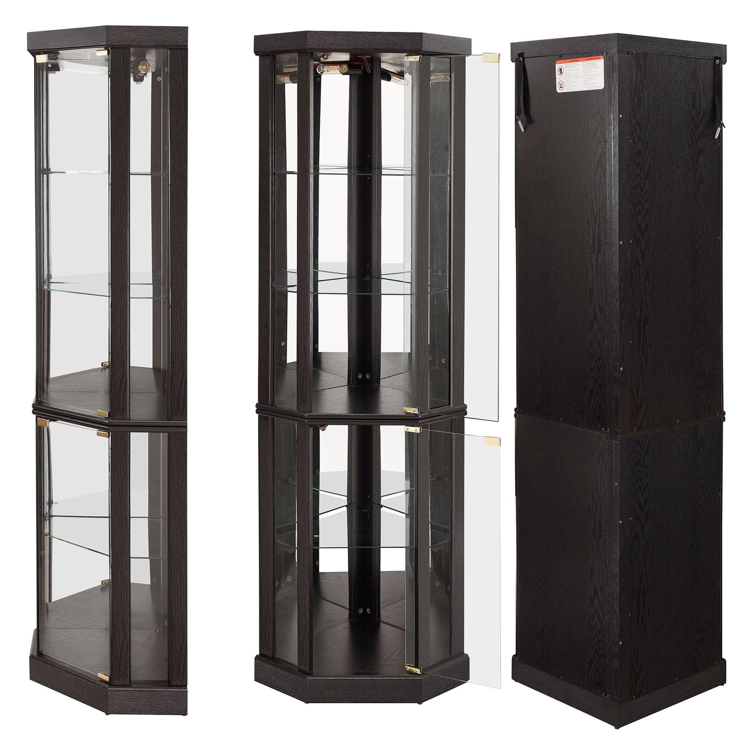 - Spacious Display: The corner lighted curio cabinet offers abundant and exquisite display space with two side-hung glass pane doors and adjustable shelves. Personalize your showcase to highlight your treasures with elegance, illuminated by the included light for a sophisticated touch.