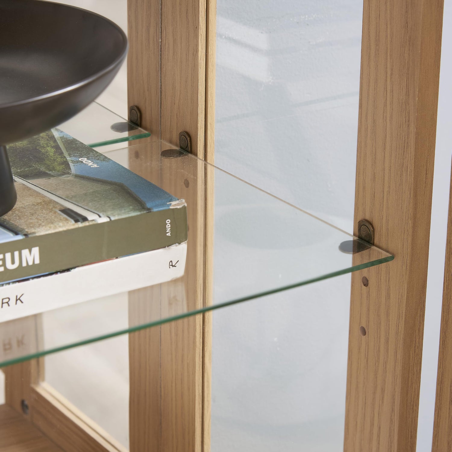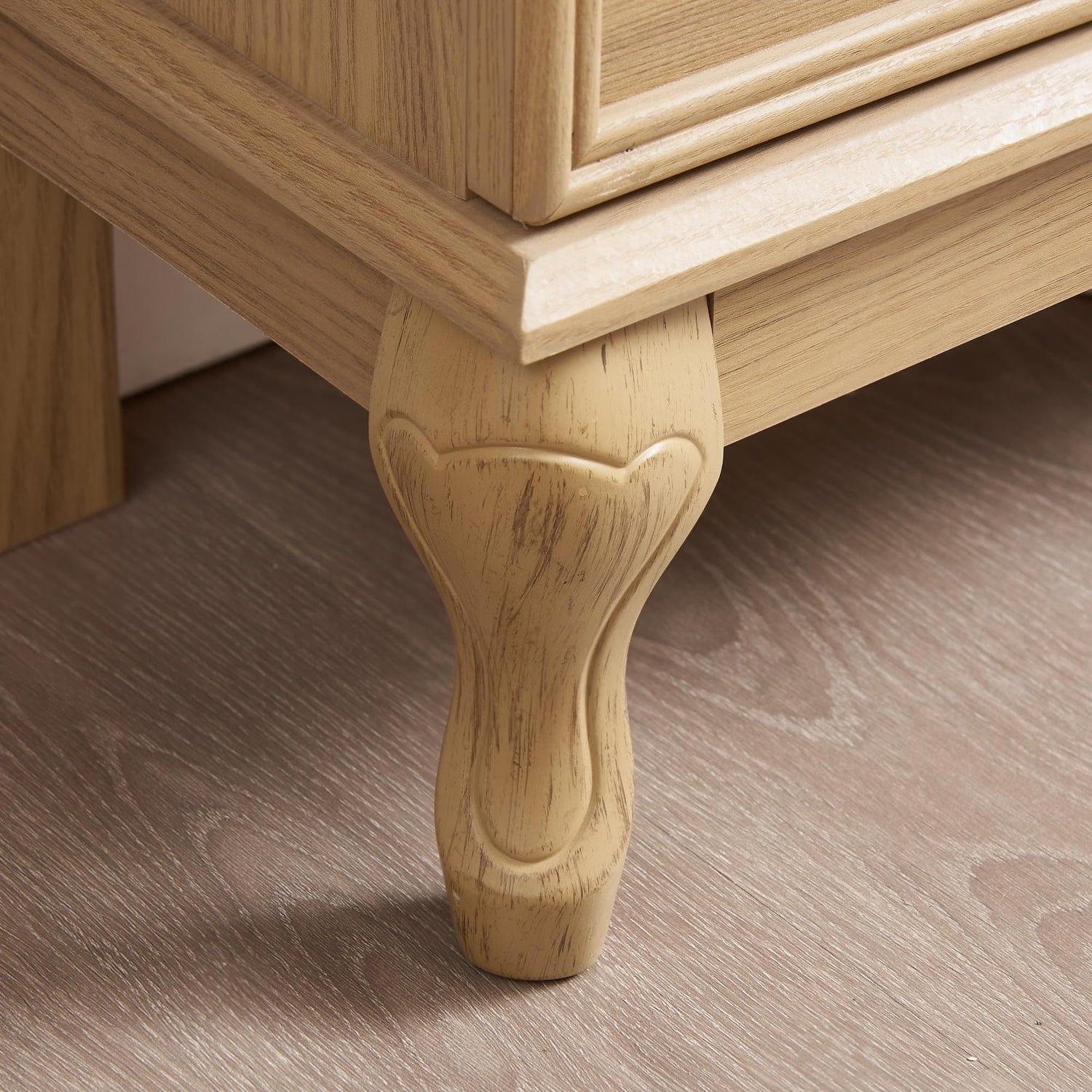 - Ample Storage Space: Equipped with glass doors, this exquisite antique cabinet offers three shelves and a generous drawer, ensuring multifunctional storage. A fixed wooden shelf and two adjustable tempered glass shelves can hold between 15 and 22 lbs per shelf.
