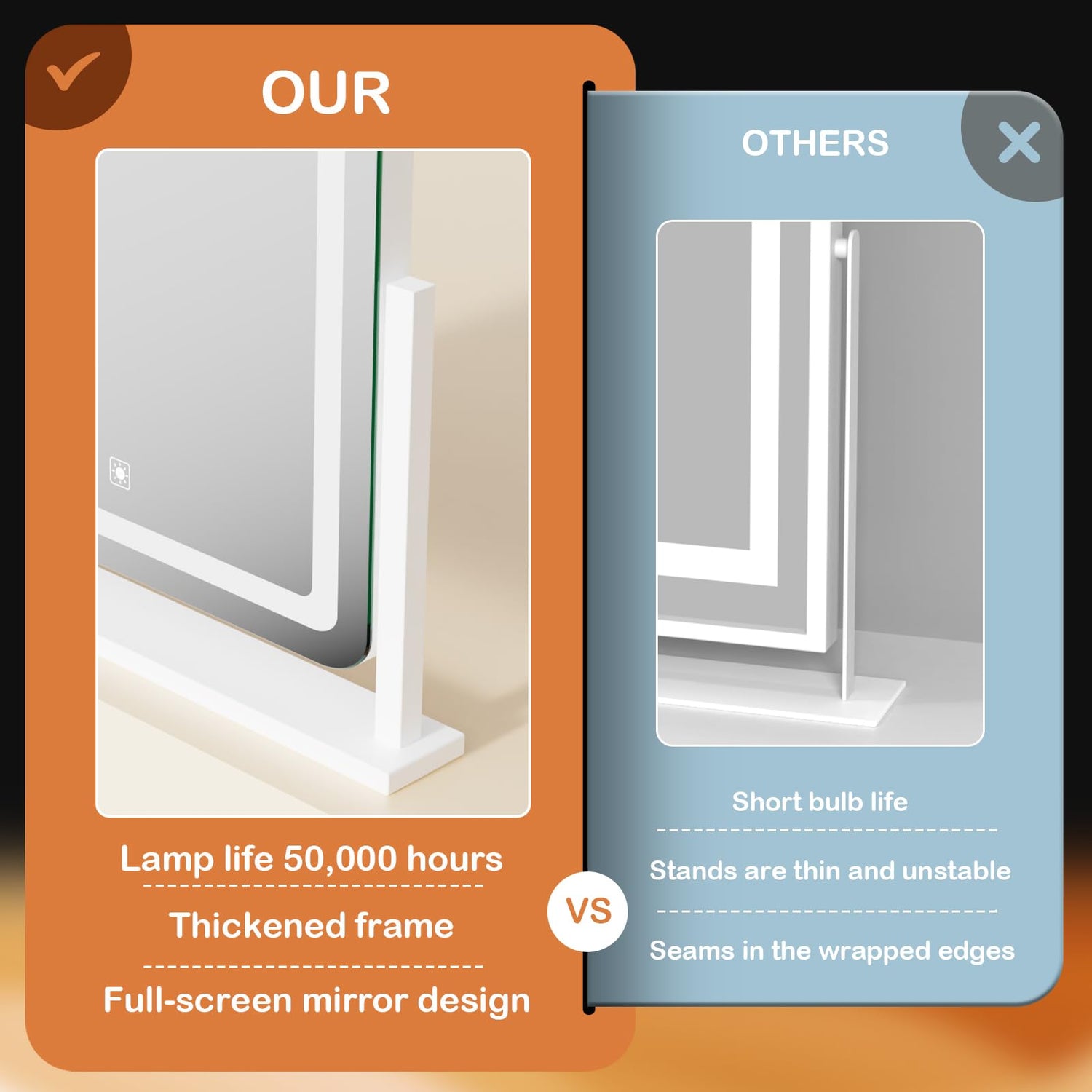 - 👍【Upgrade brightness】Most of the makeup mirrors with light bars on the market only have 80 light beads, which makes consumers feel that the lighting is not enough. We have improved on this! We have a full 120 light beads light bar per meter,which greatly improving the brightness of the makeup mirror.