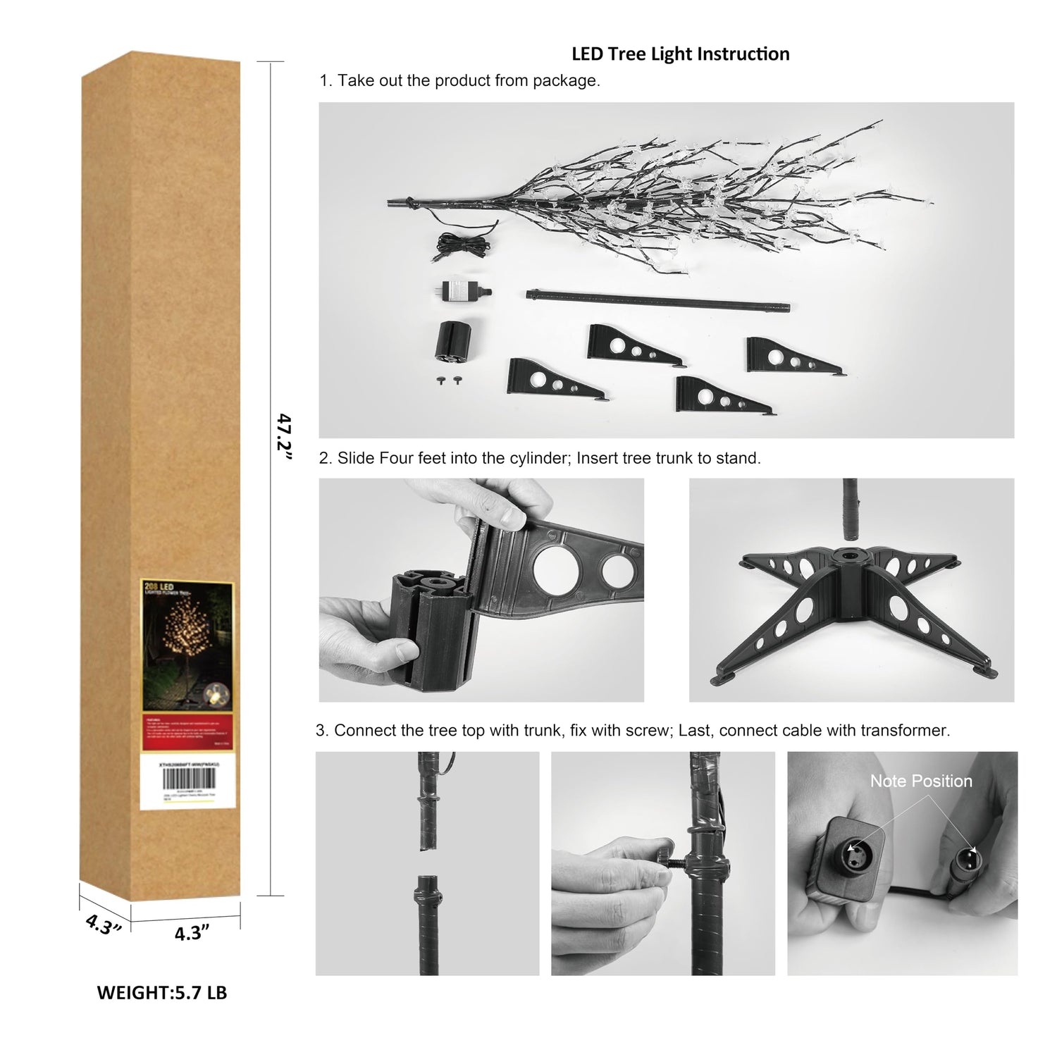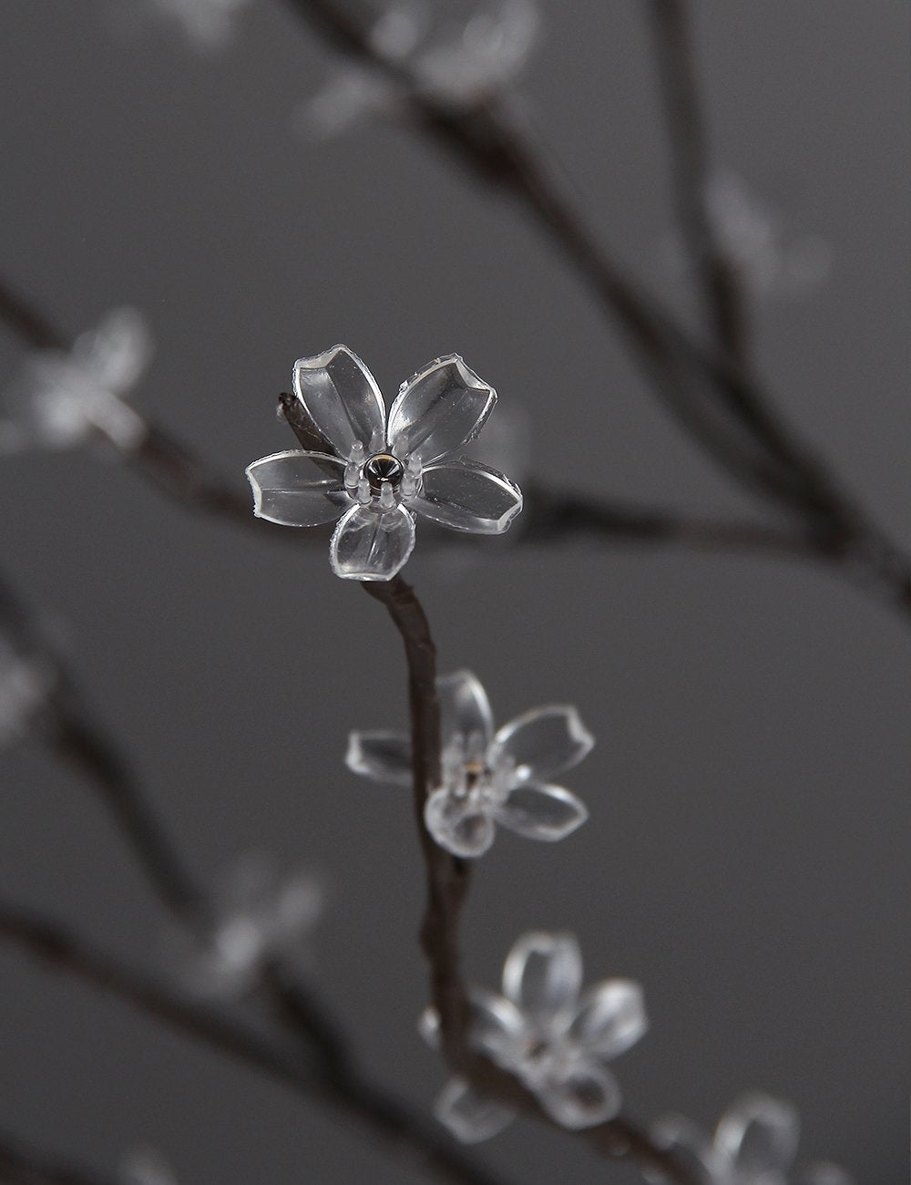 - [Natural Tree Feel and add some lighting to your room]6.5FT 208L lighted cherry blossom tree, brown branch, clear flower, warm white LED lights. Artistic looking, especially how the branches are laid out, warm white lighting and beautiful glow, which you could use year-round