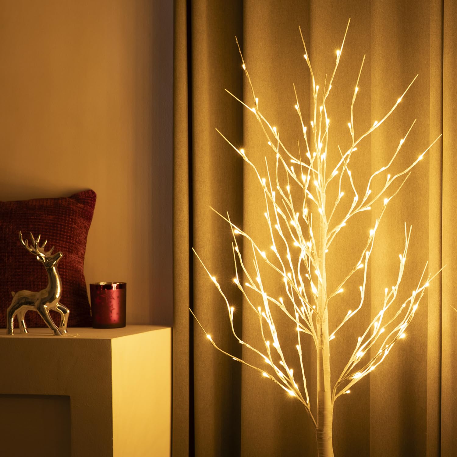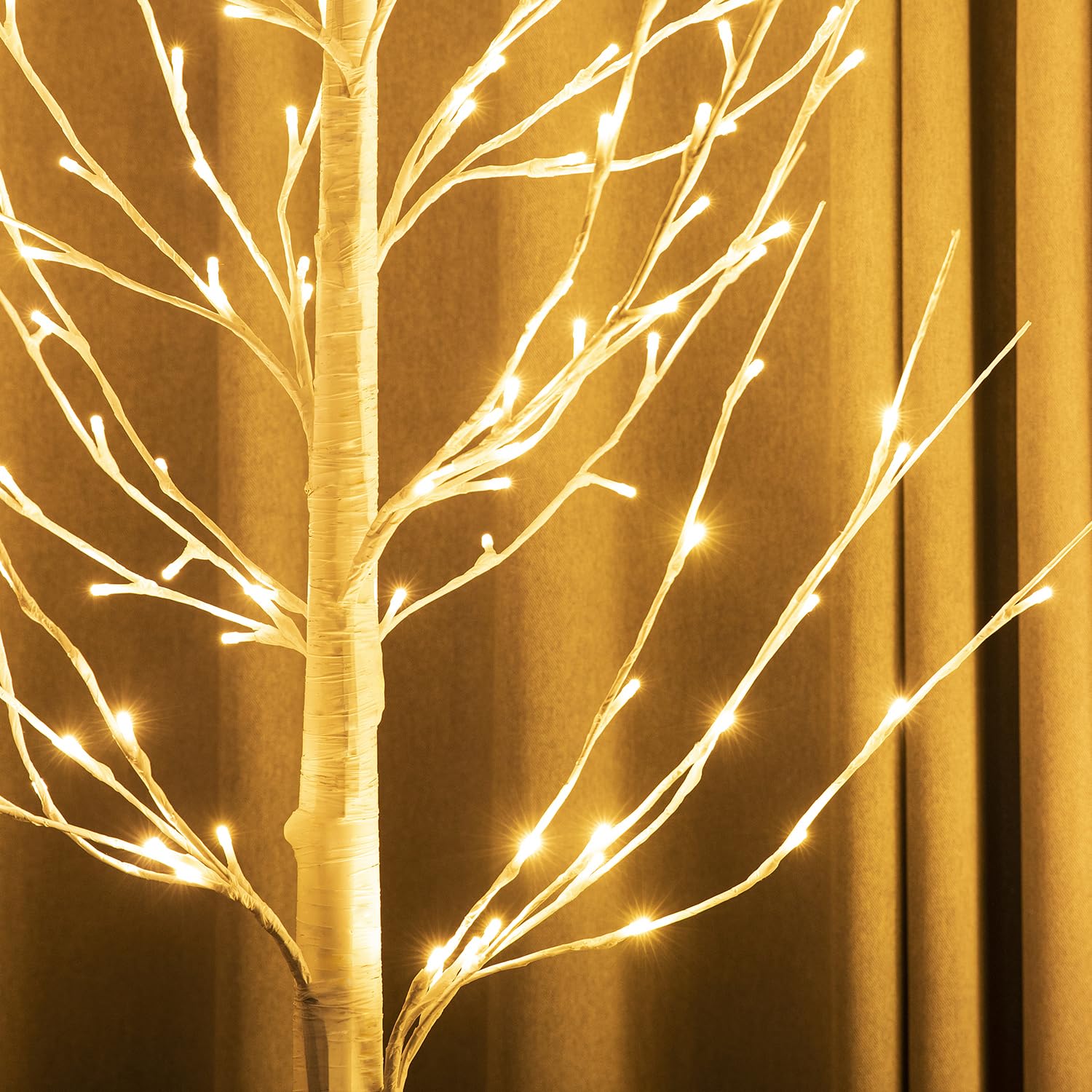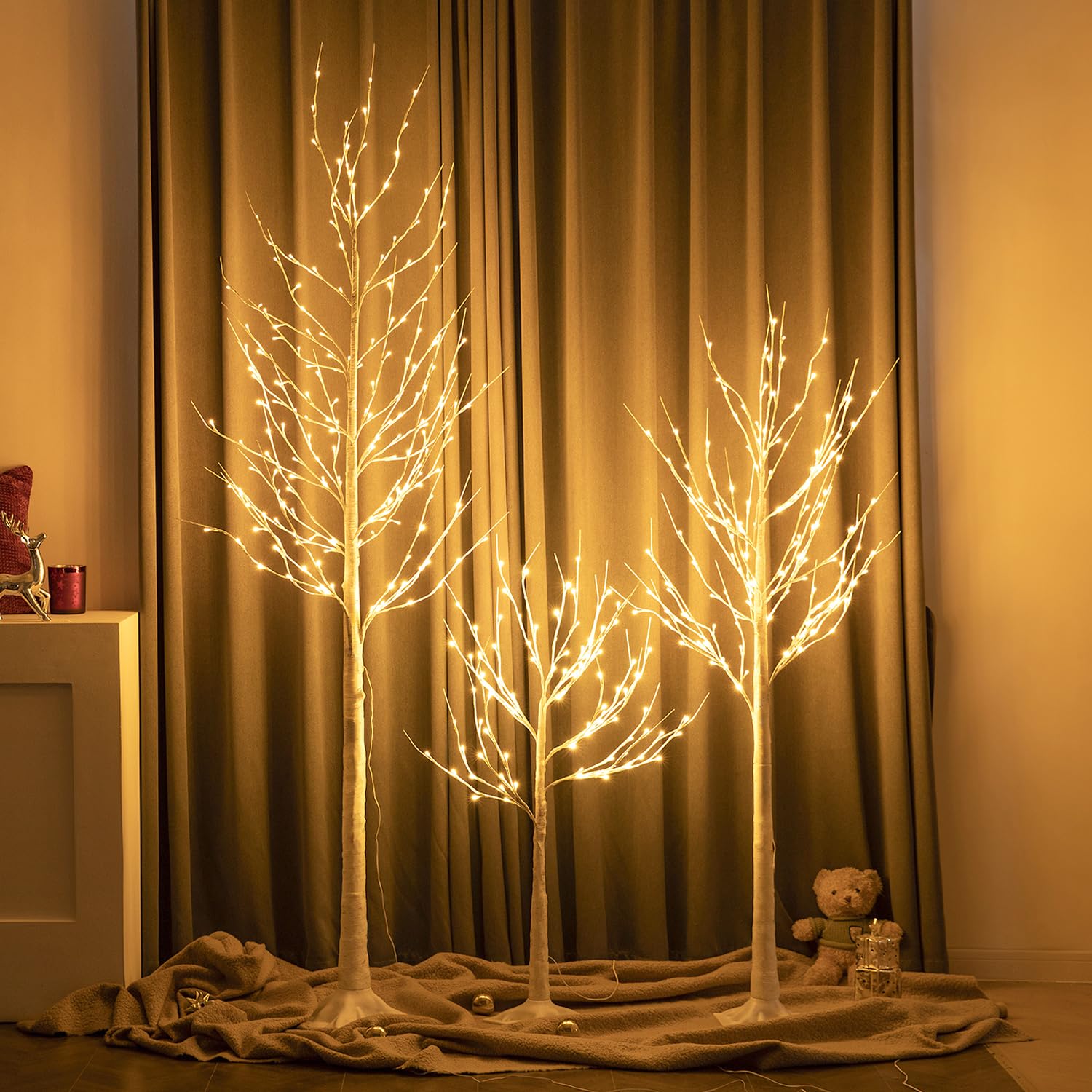 - Soft Warm Lighting: These prelit birch trees feature 96 LEDs on the 4FT tree, 144 LEDs on the 6FT tree, and 200 LEDs on the 8FT tree, all emitting a warm, gentle glow. The twinkling twig tree lights create a cozy atmosphere in any space.