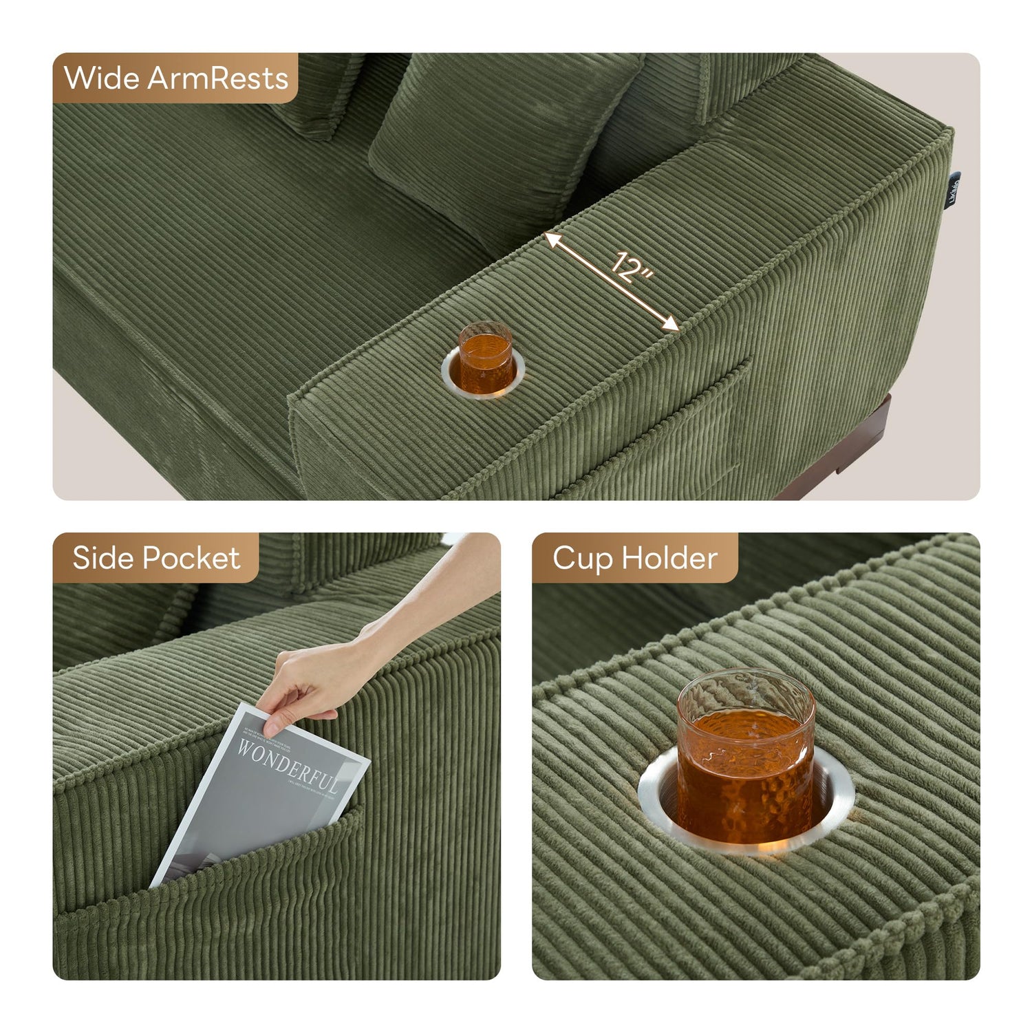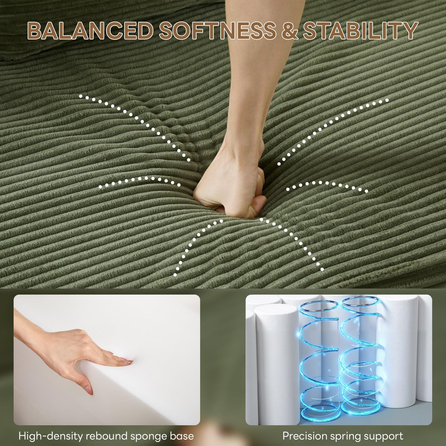 - Ultimate Comfort Chaise Couch: Sink into cloud-like comfort with the LIKIMIO Sofa, upholstered in ultra-soft corduroy for a smooth, luxurious feel. Designed with premium foam and durable high-density springs, this recliner offers exceptional body contouring and lasting comfort and support, perfect for relaxing, lounging, or entertaining guests.