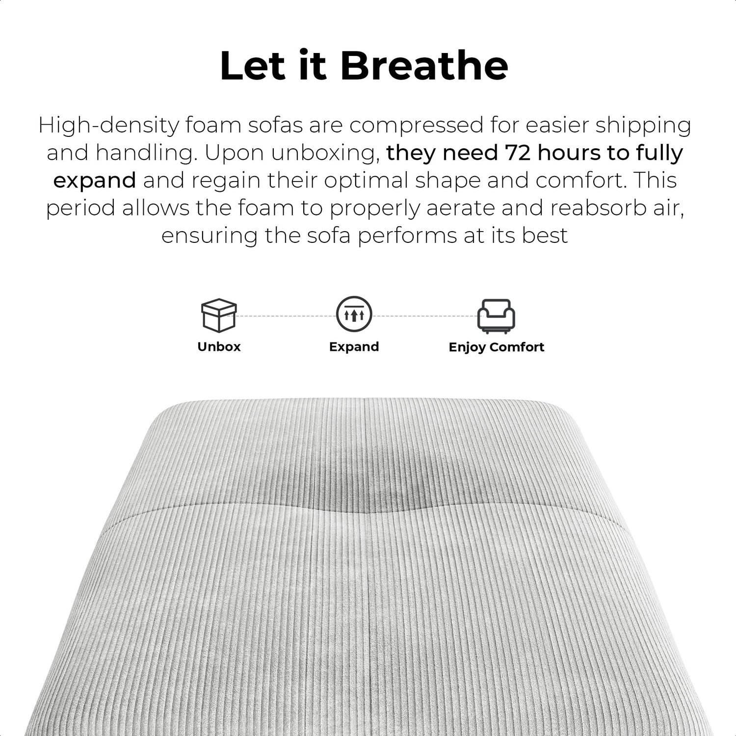 - High-Density Foam Structure for Superior Comfort: Crafted entirely with high-density foam and no internal wooden frames, this modern sofa ensures exceptional support and lasting durability. The foam features fast rebound technology, retaining its shape while providing plush yet firm seating—ideal for daily use. Say goodbye to squeaky frames and hello to pure comfort