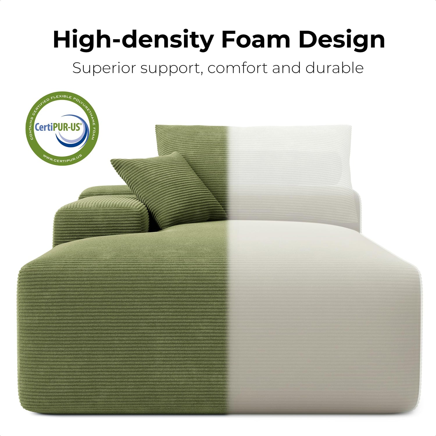 - High-Resiliency for Superior Comfort: Engineered for superior comfort, this boneless couch is made of CertiPUR-US certified, high-resiliency foam (2.0 pcf high density / 35 ILD). This medium-firm feel provides the ideal balance of lumbar support and plush comfort, cradling your body without excessive sinking. The advanced fast rebound technology ensures it retains shape and resists sagging for years