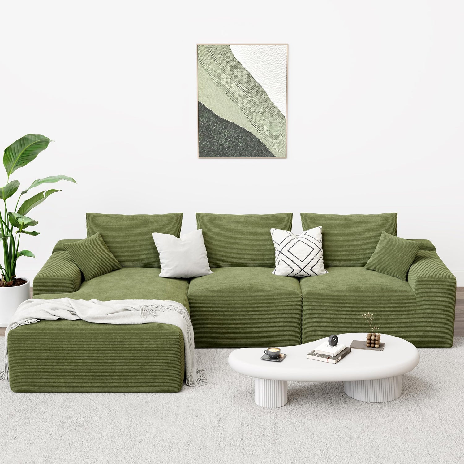 LIKIMIO 120" Boneless Couch for Living Room, Deep Seat Comfy Sectional Cloud Couch Sofa with Chaise, L-Shaped Modular Modern Sofa, No Assembly Required, Corduroy Upholstery Green