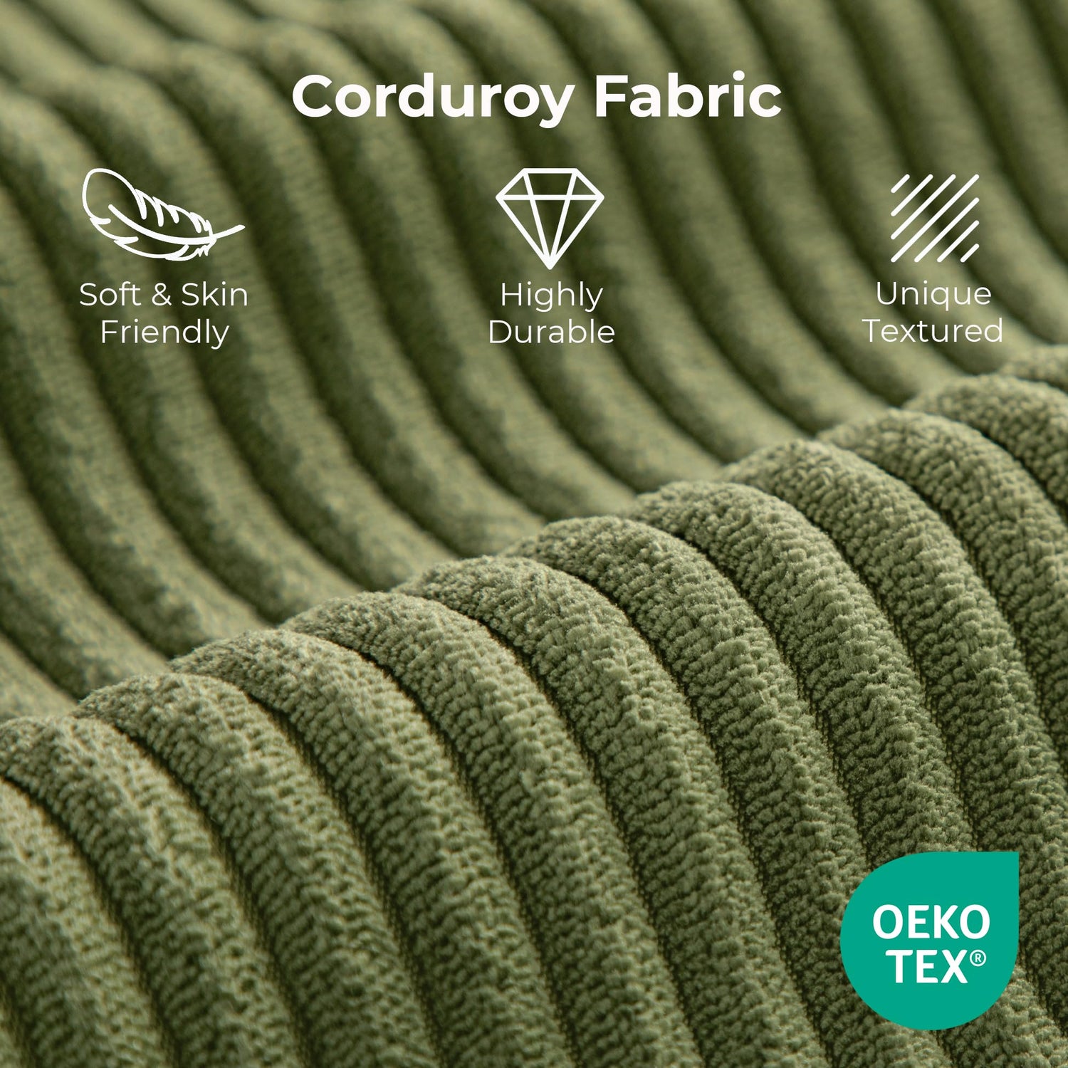 - Premium Corduroy Upholstery: Upholstered in soft, skin-friendly corduroy fabric that is OEKO-TEX certified. This highly durable material is resistant to stains, pilling, and fading, making it ideal for households with children and pets. It offers easy maintenance and long-lasting elegance, adding a touch of sophisticated warmth to any modern space