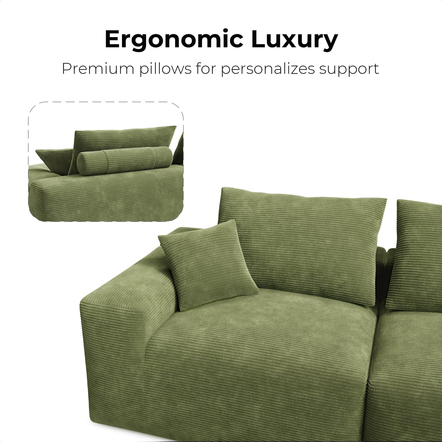 LIKIMIO 120" Modern L-Shaped Modular Sectional Sofa for Living Room, Corduroy Upholstery Green, Oversized 3-Seater Couch with Deep Seat and Movable Ottoman – No Assembly