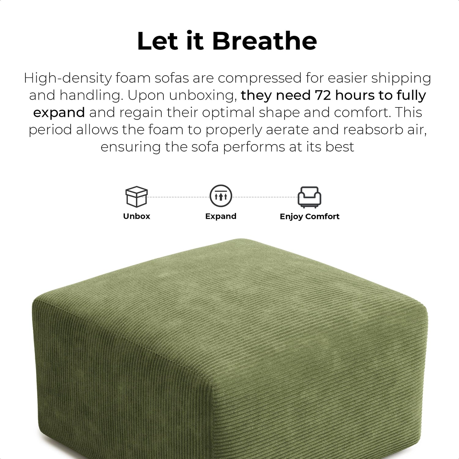 - High-Density Foam Structure for Superior Comfort: Crafted entirely with high-density foam and no internal wooden frames, this modern boneless sofa ensures exceptional support and lasting durability. The foam features fast rebound technology, retaining its shape while providing plush yet firm seating—ideal for daily use. Say goodbye to squeaky frames and hello to pure comfort