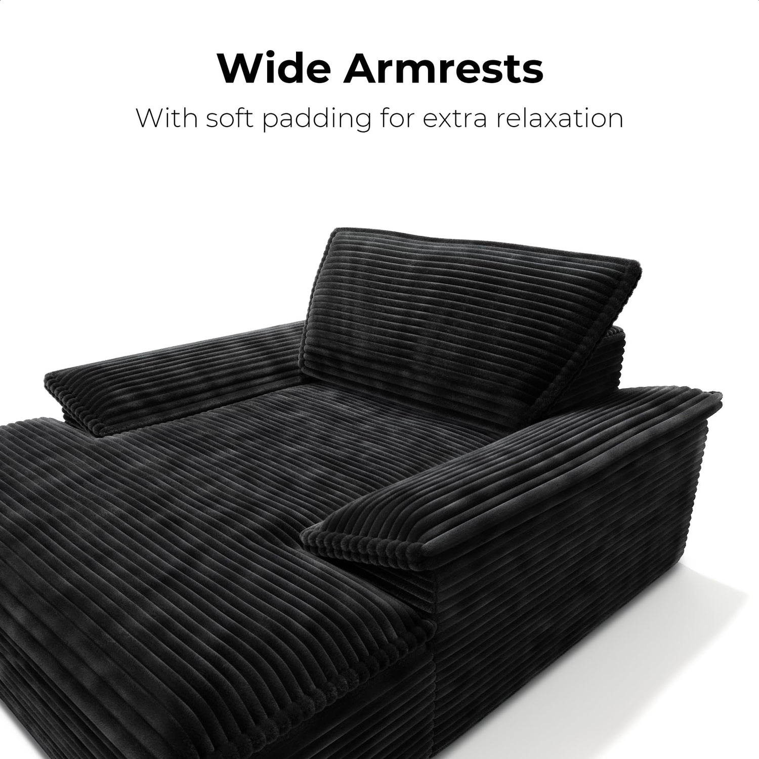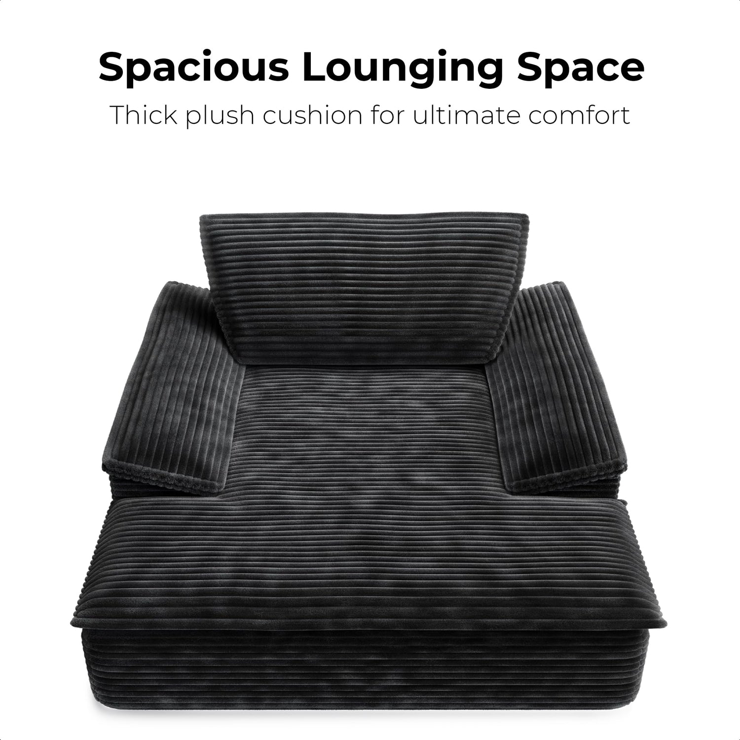 LIKIMIO 59'' Oversized Chaise Lounge Chair Indoor, Upholstered Sofa Bed with Thick Cushion and Armrests, Sleeper Chair - Plush Corduroy Chair Bed for Living Room, Bedroom (Black)