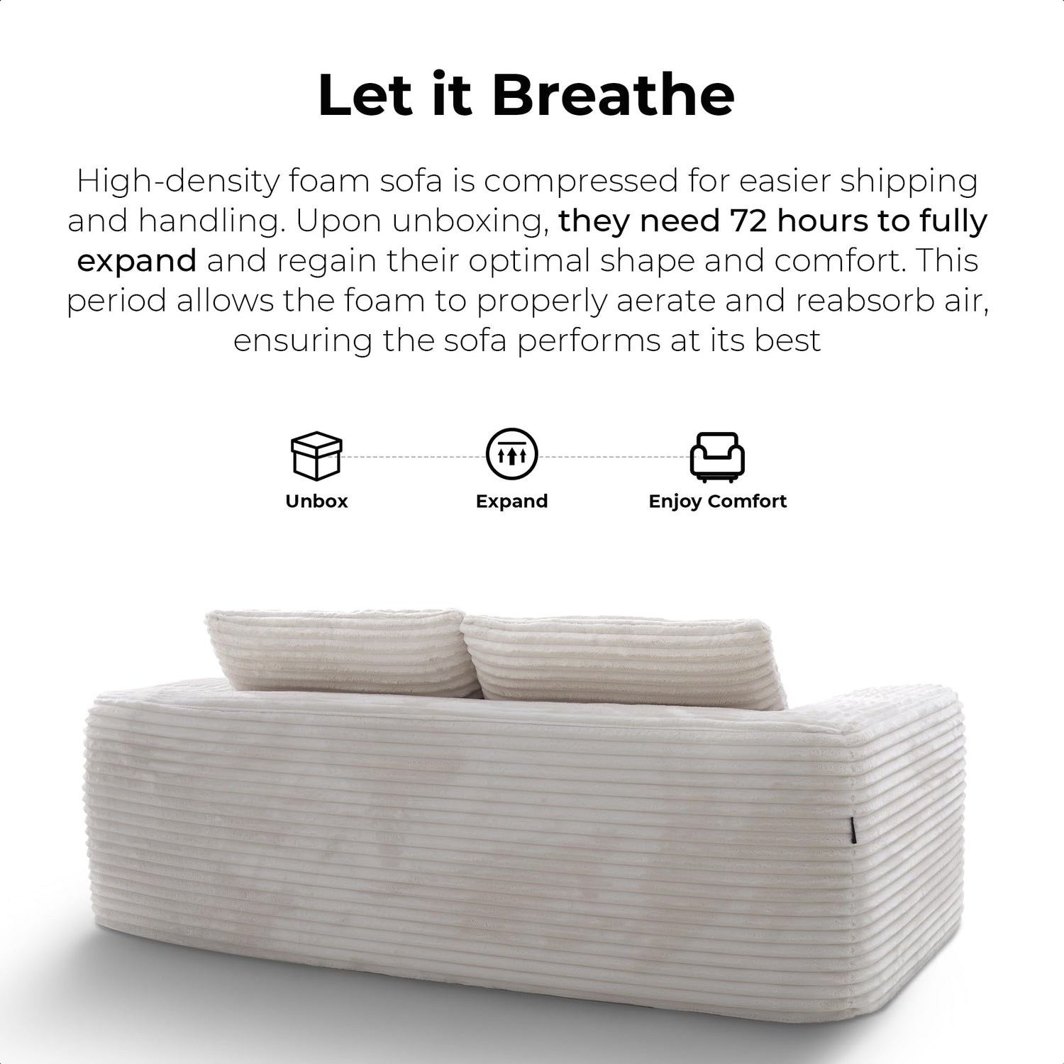 - Luxury That Stands Up to Life: Upholstered in velvety-soft corduroy fabric, this sofa combines elegance with practicality. The breathable and skin-friendly material ensures a comfortable experience, while its textured surface cleverly conceals minor signs of use. Resistant to everyday wear and accidental spills, this sofa stays fresh and elegant season after season, making it perfect for daily life