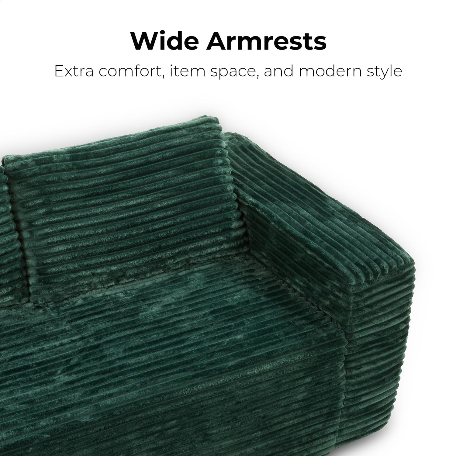 LIKIMIO 71" Loveseat Sofa in a Box - Plush Corduroy Deep Seat Couch, No Assembly Required, Space-Saving Design for Compact Living Room, Apartment, Home Office, Green