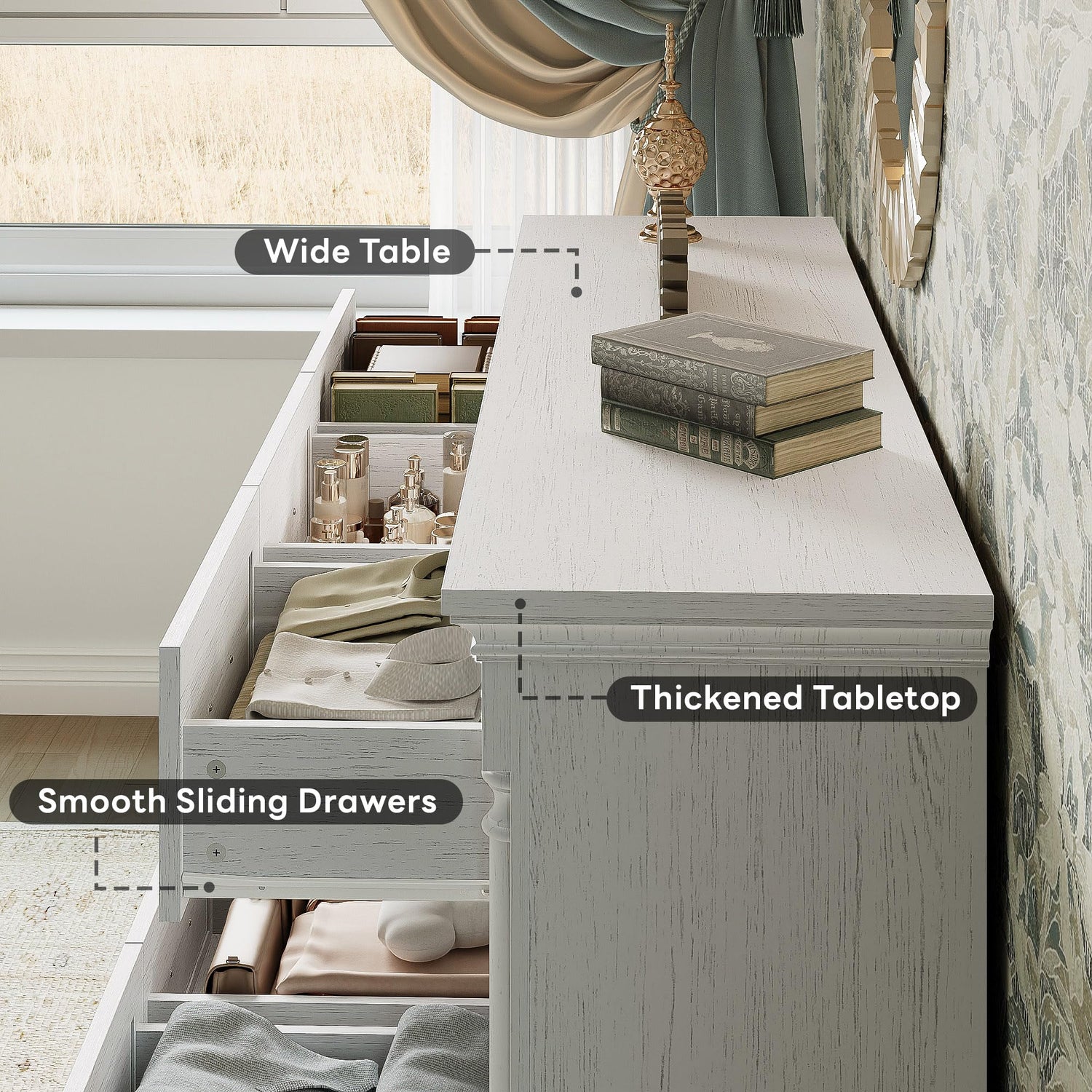 - Elegant Roman Column Design: Inspired by classic architecture, this dresser features stunning Roman column with intricate, three-dimensional detailing. The timeless silhouette adds a touch of sophistication and vintage charm to your farmhouse or traditional bedroom decor