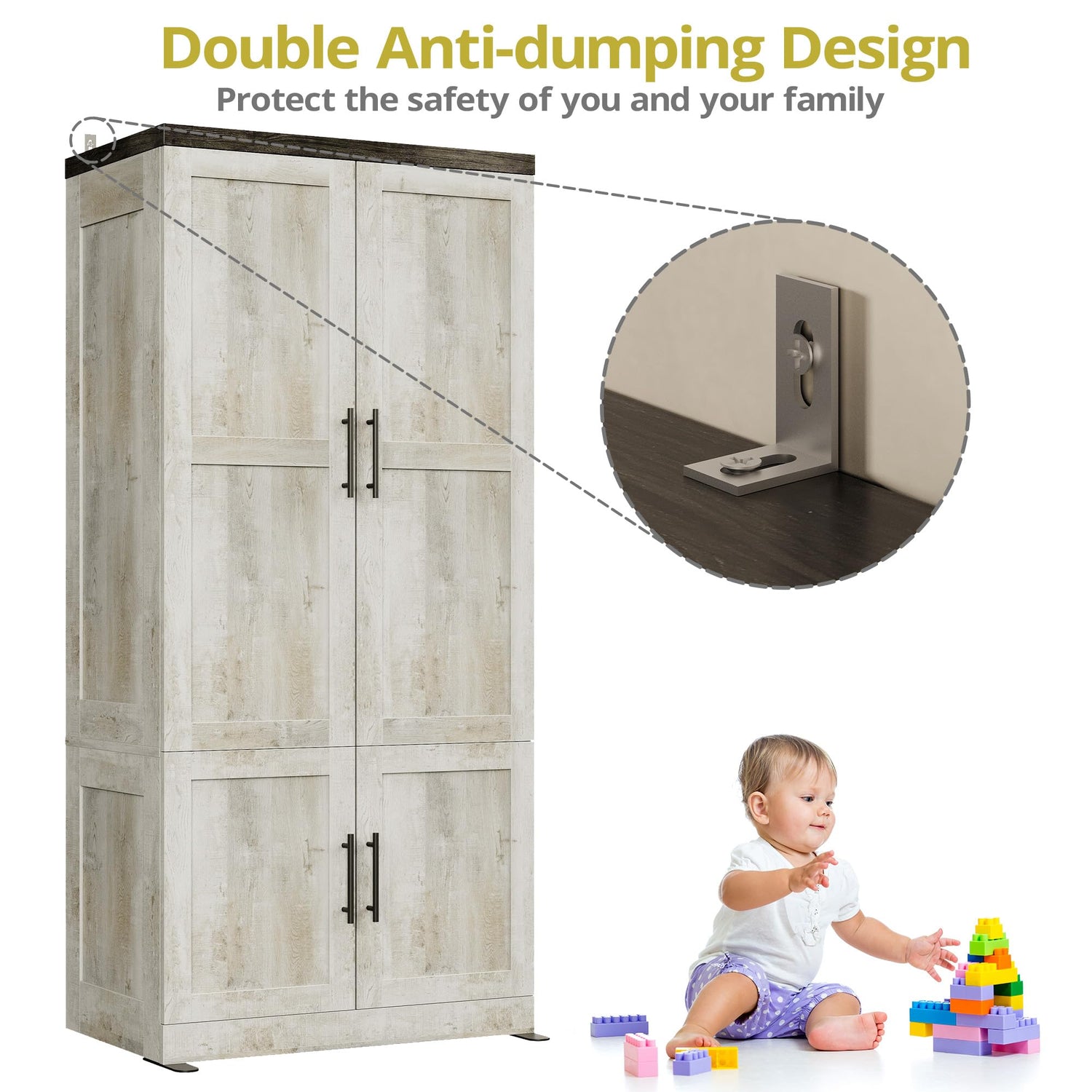 - Stable and Safe: The high-quality MDF board and the full-floor base design make the wooden wardrobe stable for long-term use. An anti-tipping device is provided to avoid tipping and ensure safety