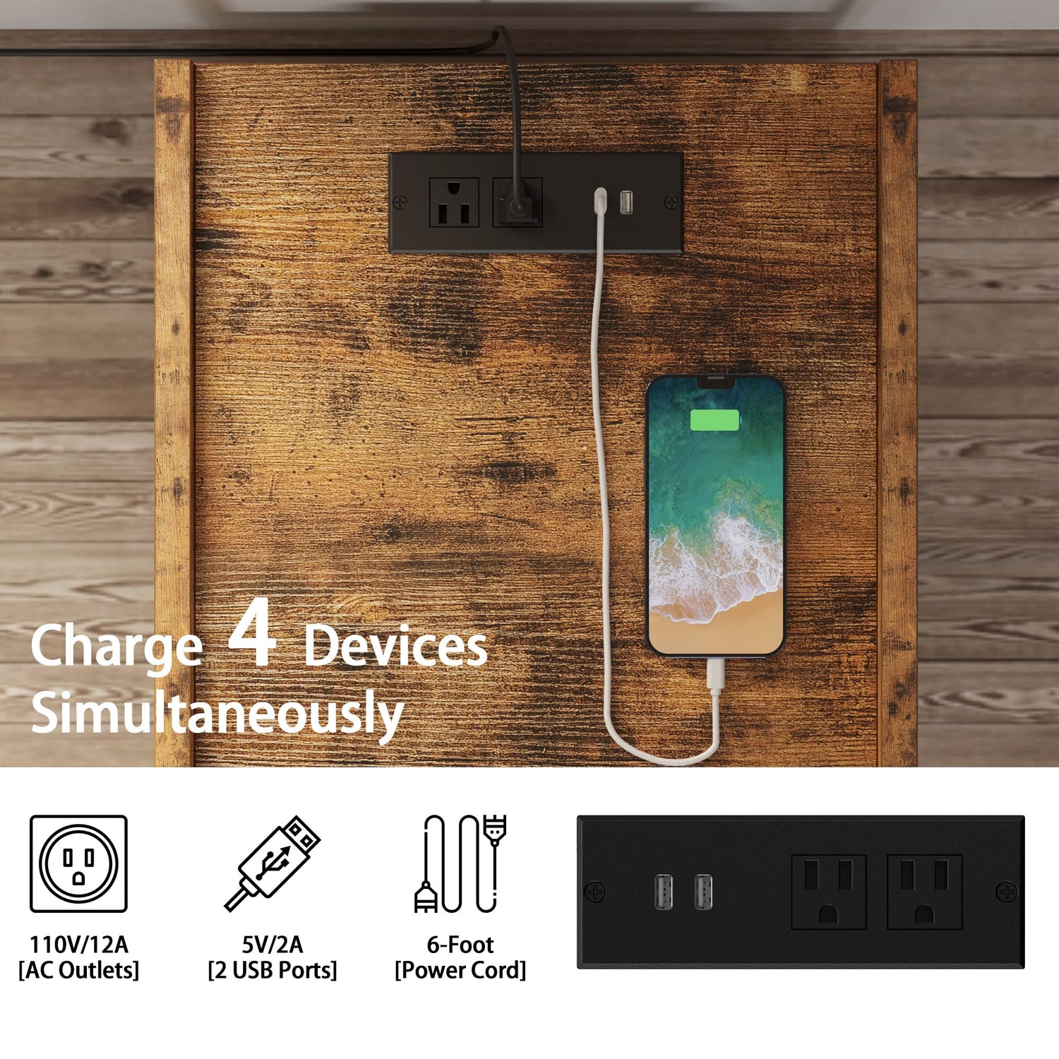 - Charging Station At Your Fingertips-two Standard Plug Outlets and two USB Ports with Cable Management 4.9 ft long power supply cord. Make charging and common small items within easy reach