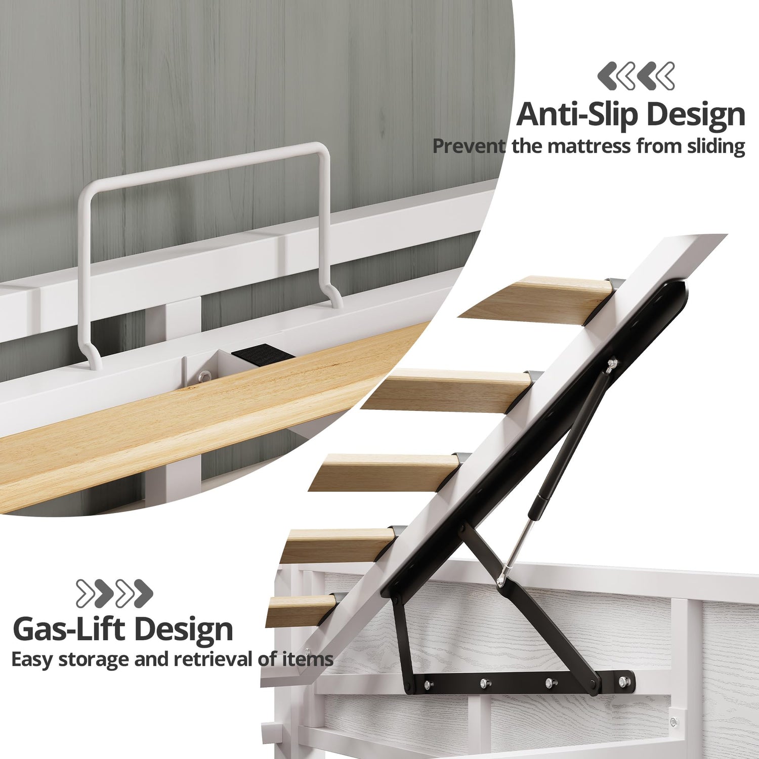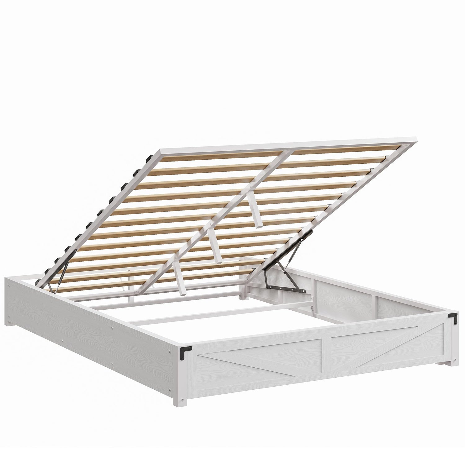 LIKIMIO Platform Queen Size Bed Frame, Farmhouse Bed Frames with Lift Up Storage, Wooden Slats, Sturdy and No Noise, Easy Assembly, White