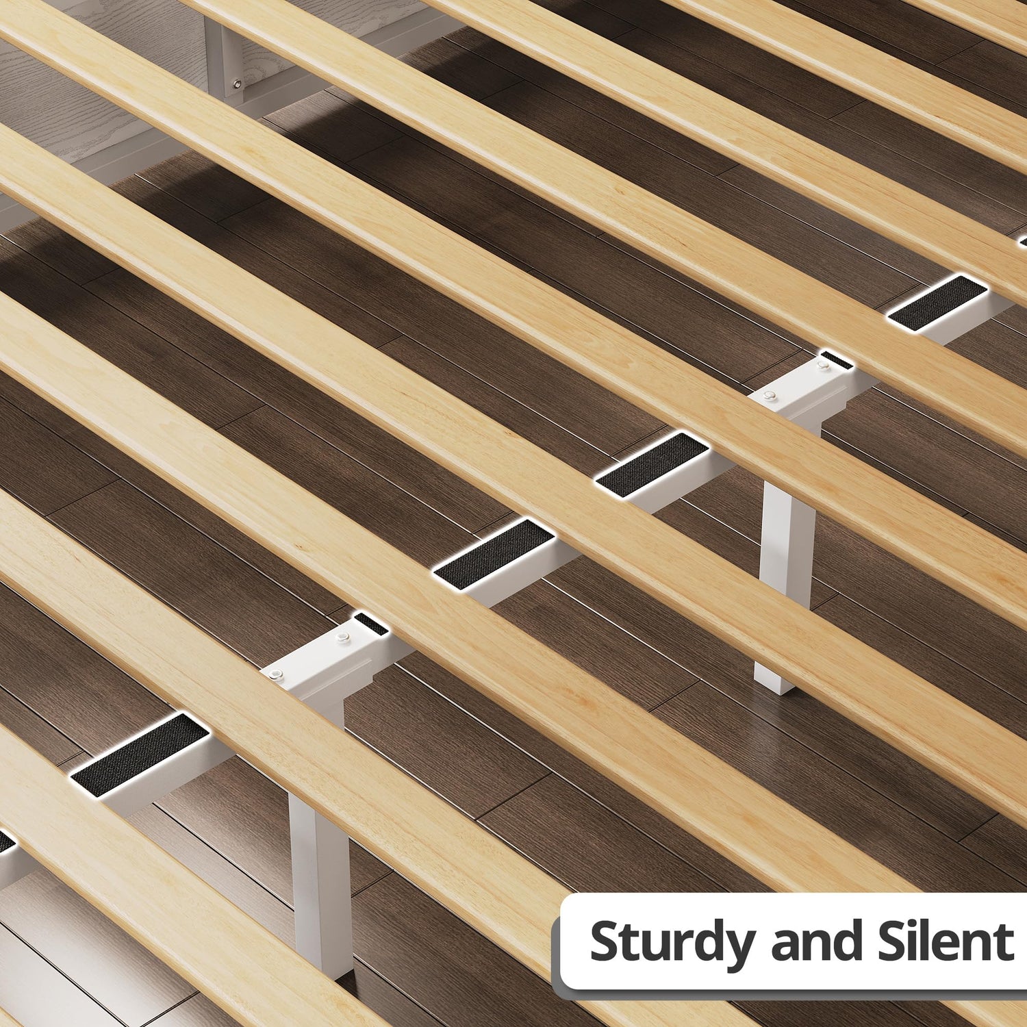- Sturdy structure: The bed board and side panels with white realistic wood grain make the bed more beautiful and sturdy, no box spring is needed