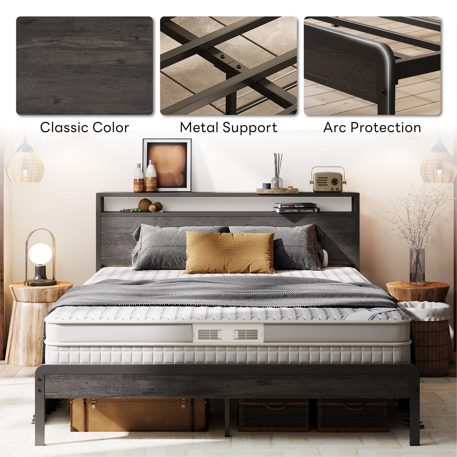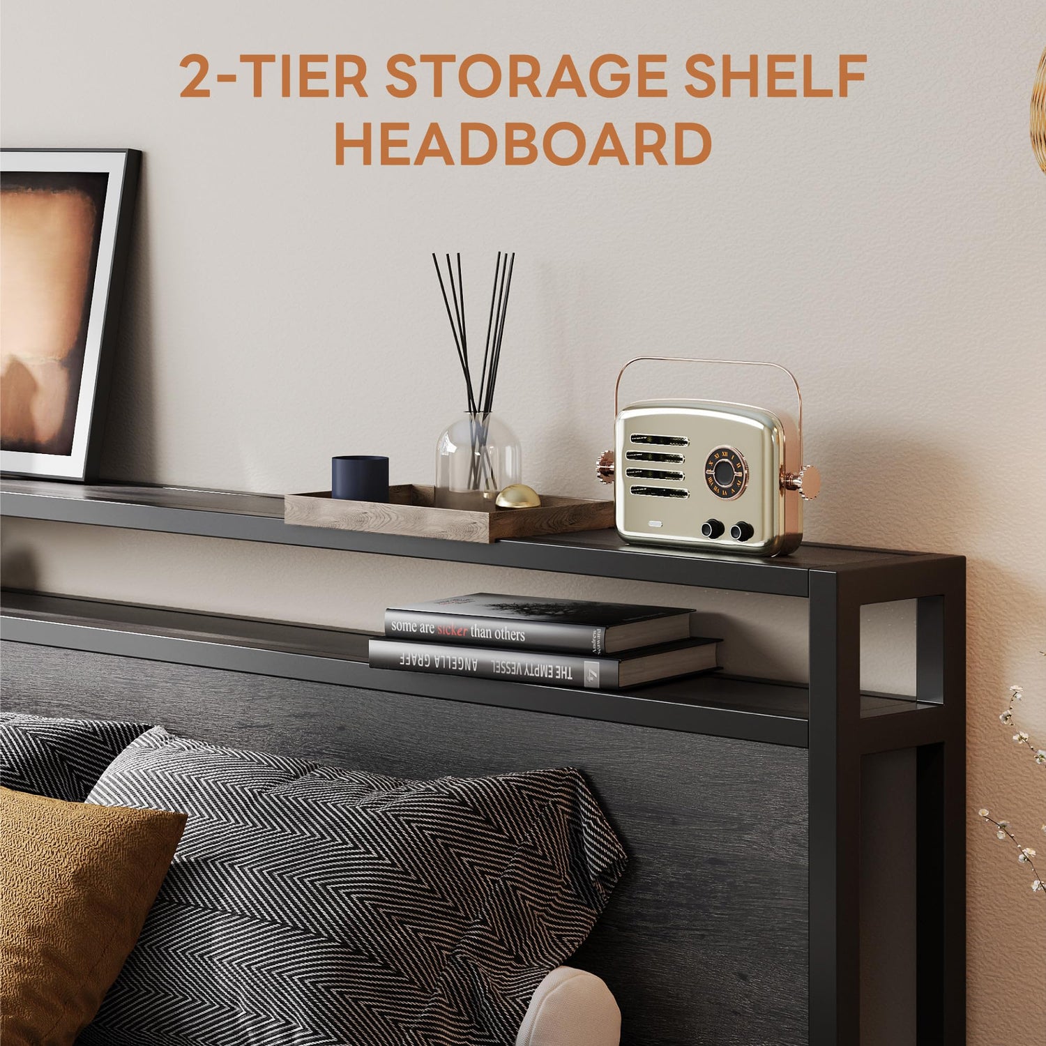 - Practical Two-Tier Shelf Headboard: The headboard storage rack of the bed can provide you with a place for your phone, glasses, and books when you go to sleep