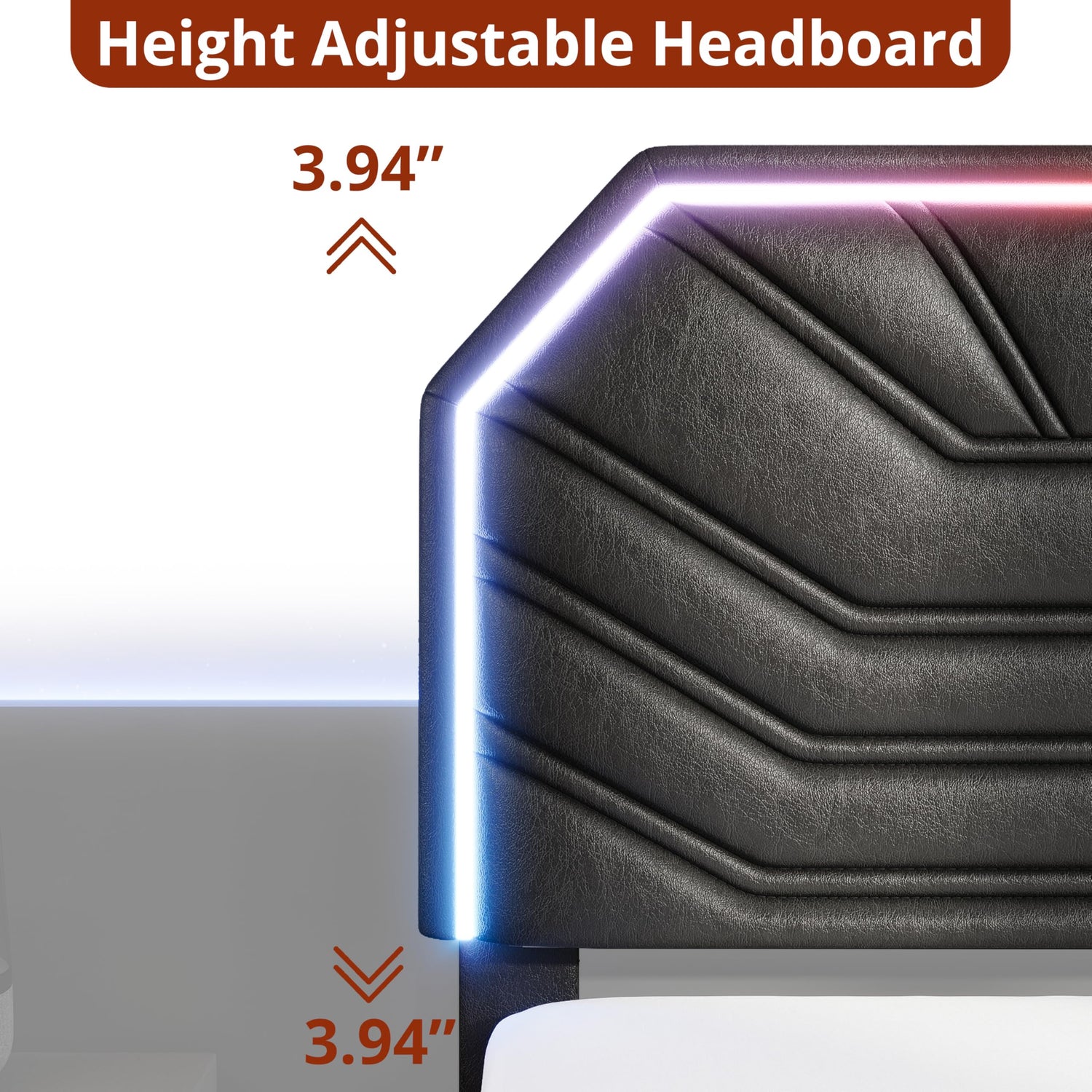 - Adjustable Headboard: The black PU material and line design form the unique style of this upholstered twin bed. The adjustable headboard can easily adapt to mattresses of different thicknesses from 8 to 12 inches