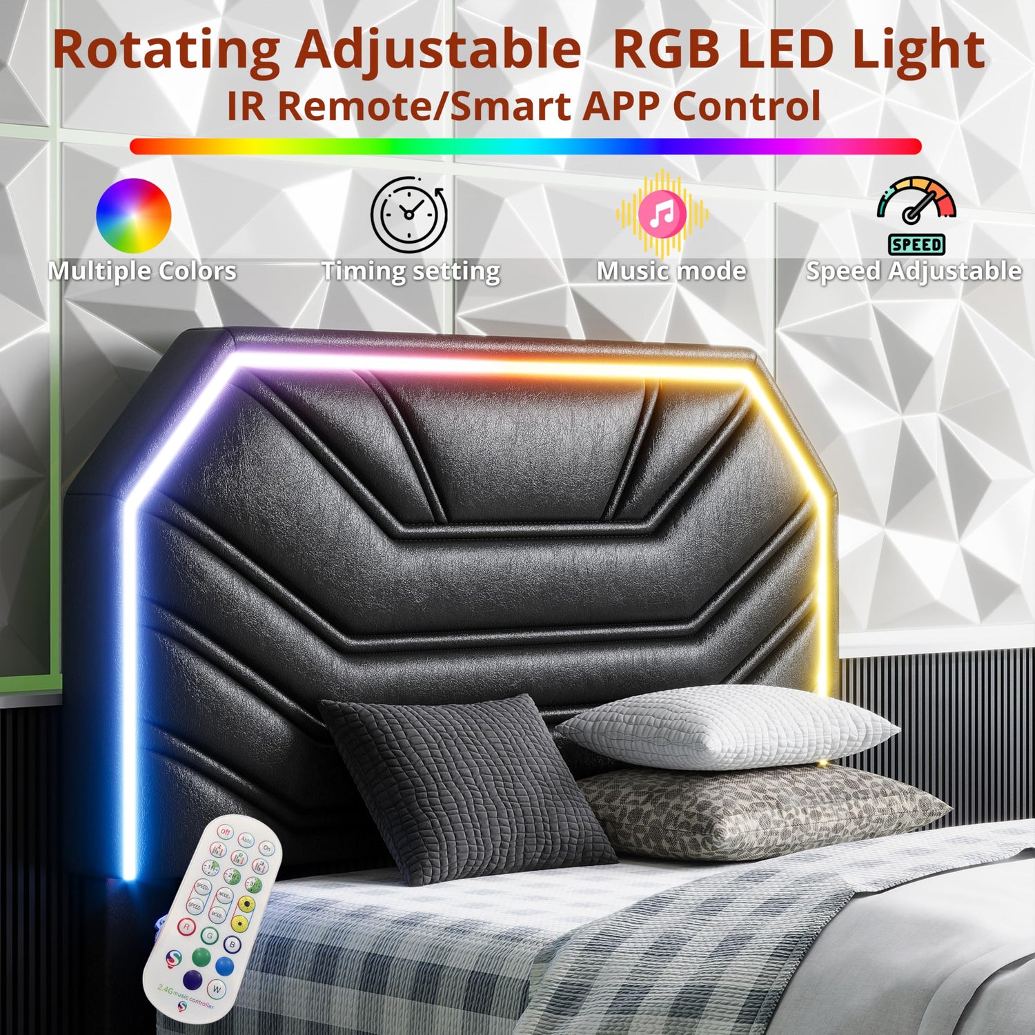 LIKIMIO Twin Bed Frames with Lighted Headboard, Upholstered Modern Cama Twin Platform Bed with Heavy Duty Supports, No Box Spring Need, Noise Free, Easy Assembly, Black