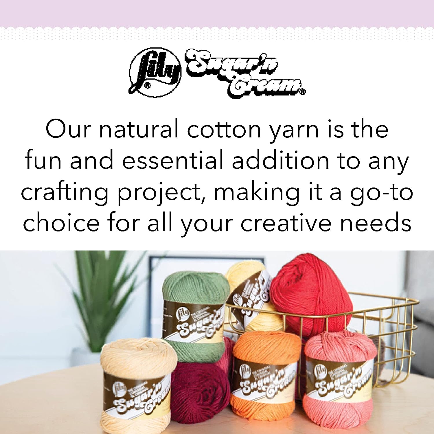 Details: Lily Sugar 'n Cream Cotton yarn is 100% USA Grown cotton yarn. Sugar 'n Cream is a versatile worsted weight yarn, that’s great for small projects like dishcloths and potholders, to home décor staples like afghans! Available in a wide variety of shades, including neutrals, brights, and pastels. Conveniently machine washable and dryable for easy care.