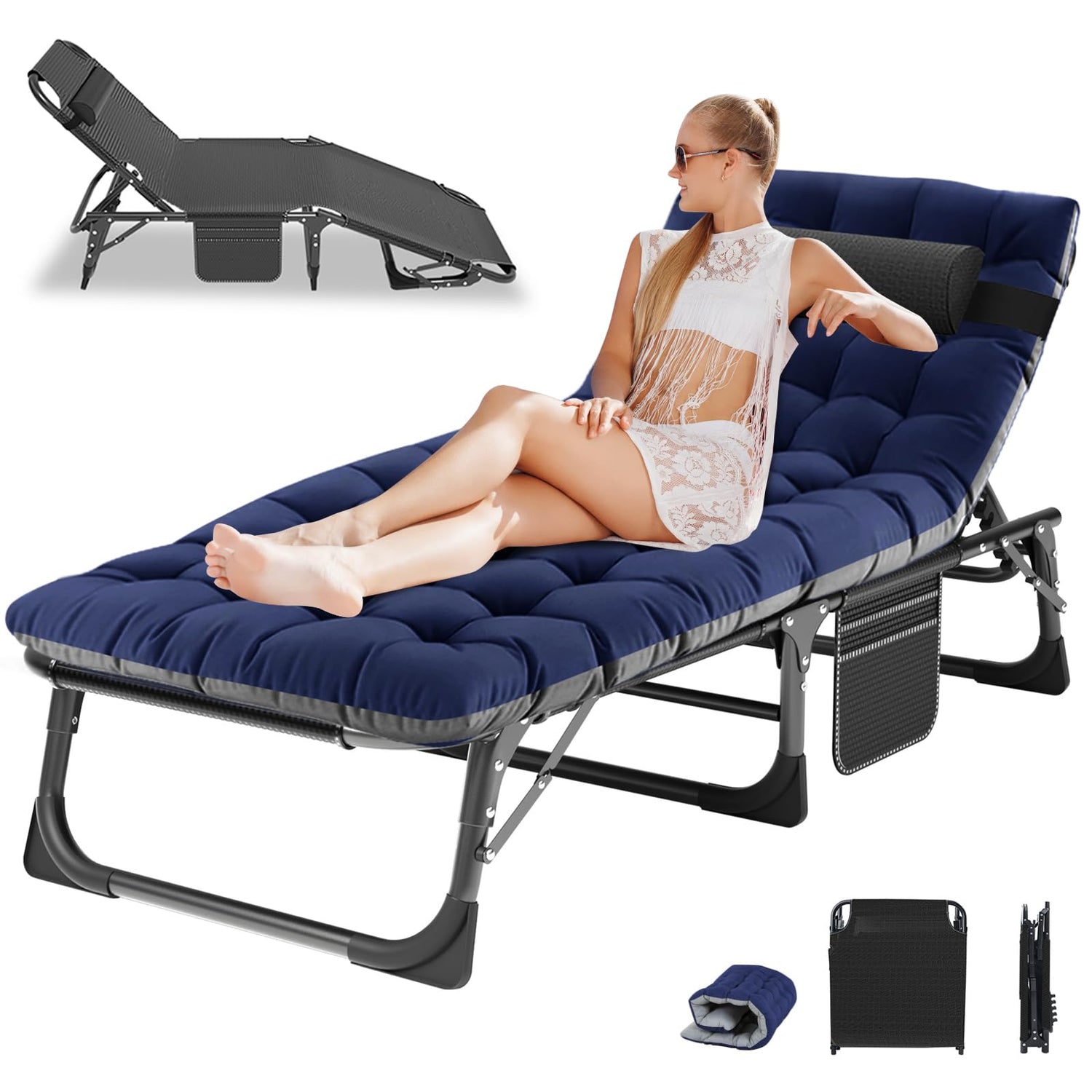 LILYPELLE Lounge Chair with Mattress, Heavy Duty Outside Lounge Chair Outdoor Portable Folding Lounge Chairs Sleeping Cots Bed for Camping, Pool, Beach, Patio
