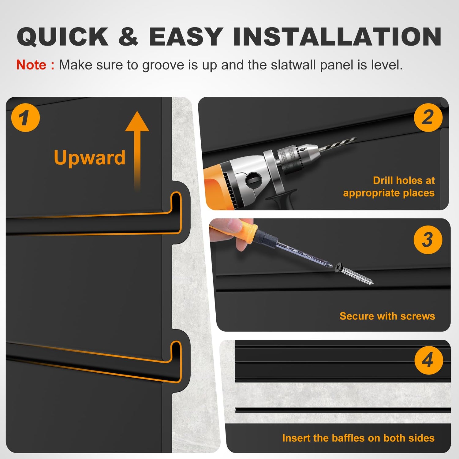 - Sturdy and Reliable: The garage slatwall is waterproof, moisture-proof, fire-resistant, easy to clean, and resistant to fading, drying, cracking, and peeling. easy installation with interlocking seamless grooves. Smooth satin finish gives a high-end appearance