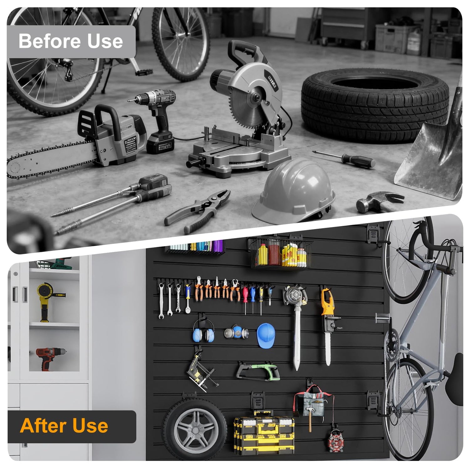 - Heavy-Duty Slatwall Panels: Each slat wall panel is capable of holding up to 100 lbs/sqft when installed correctly, making it perfect for organizing heavy items like large tools or storage bins. The 3-inch spaced grooves provide versatile hanging options for a variety of items