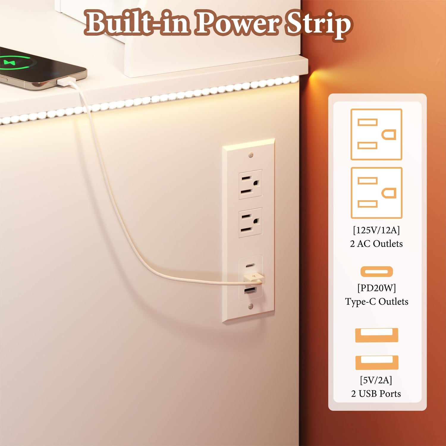 - 5 IN 1 Power Outlet: The white vanity desk with a 5 in 1 built-in power outlet, which includs 1 fast-charging PD 20W Type C port, 2 standard outlets, and 2 USB ports for Lights devices. Provide power for your hair dryer, curling iron, and other electronic devices at the same time. Bringing more convenience to your daily vanity life.