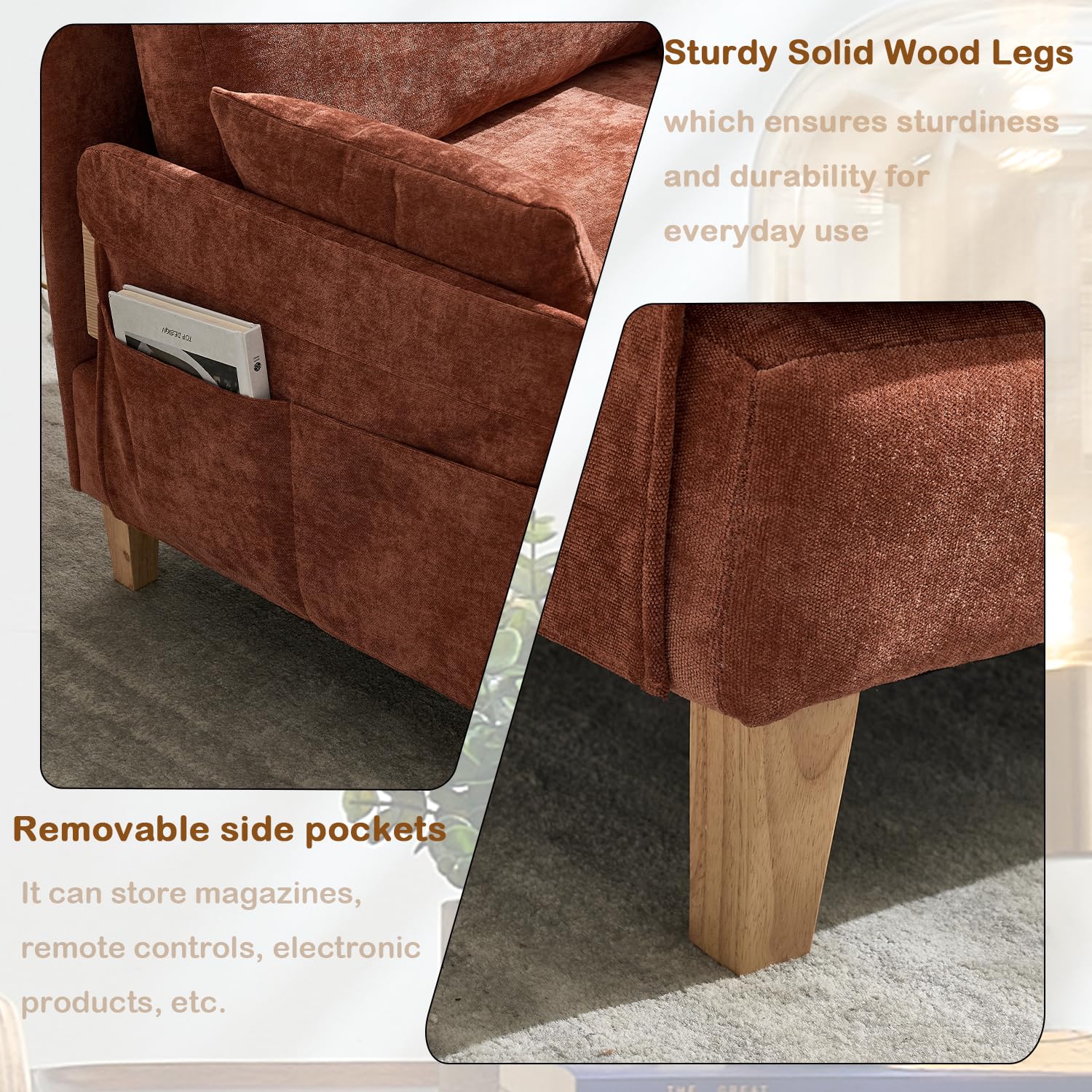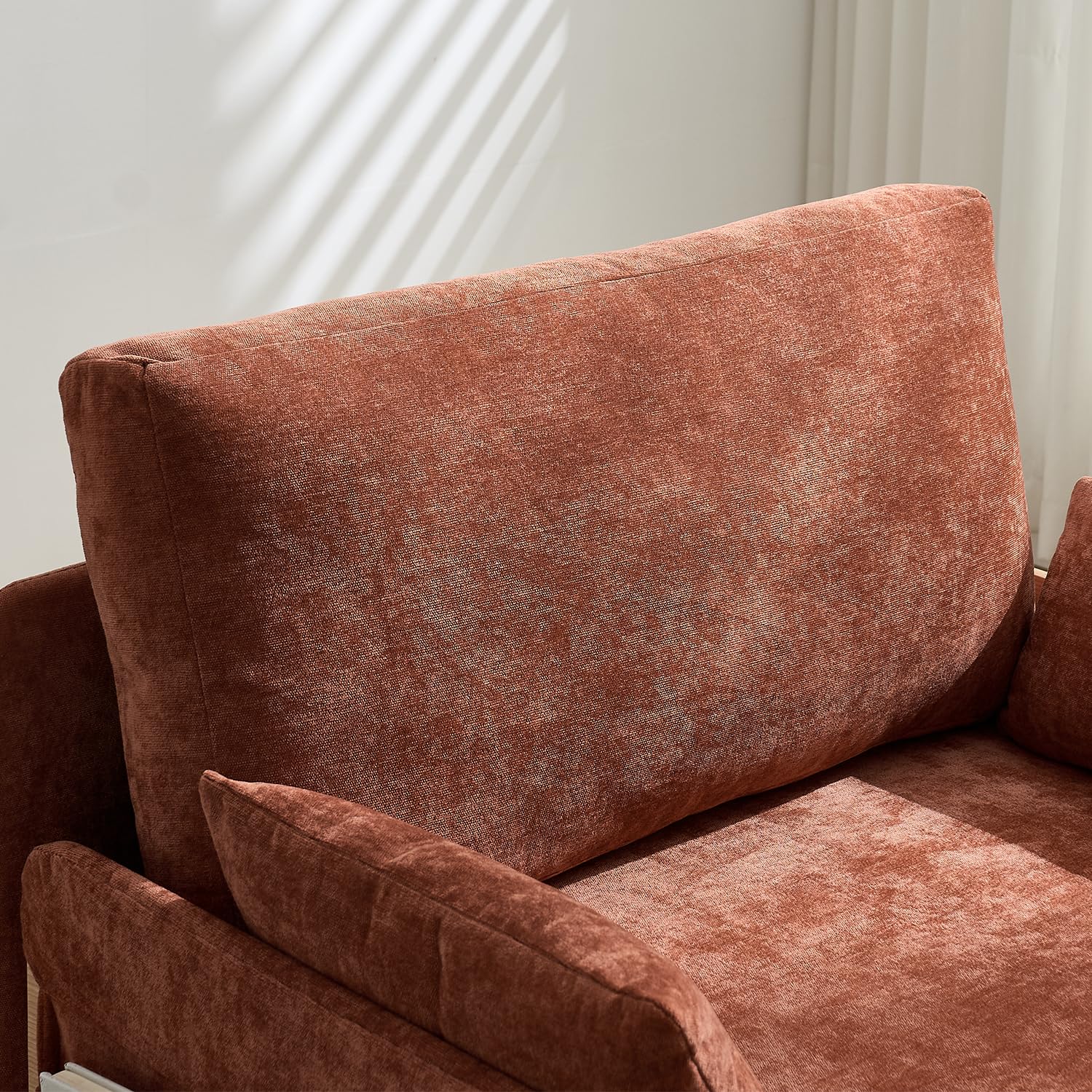 Lin-Utrend Convertible Sofa Bed with Wooden Arms,Convertable Single Sofa Futon Chair for Small Spaces,Foldable Sleeper Chair Bed for Living Room, Bedroom,Office (Orange)