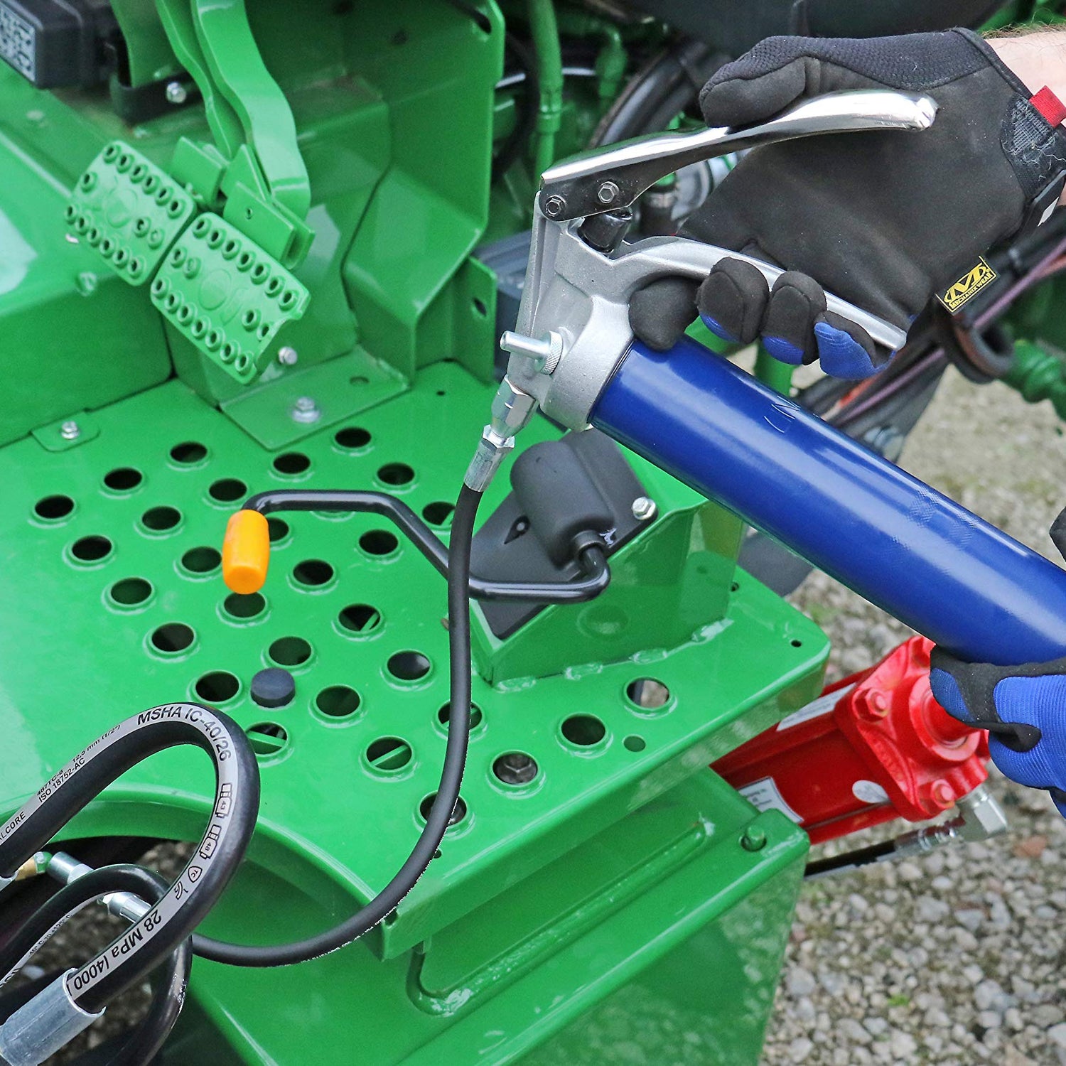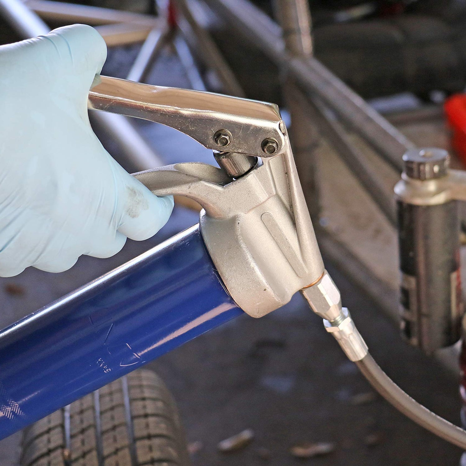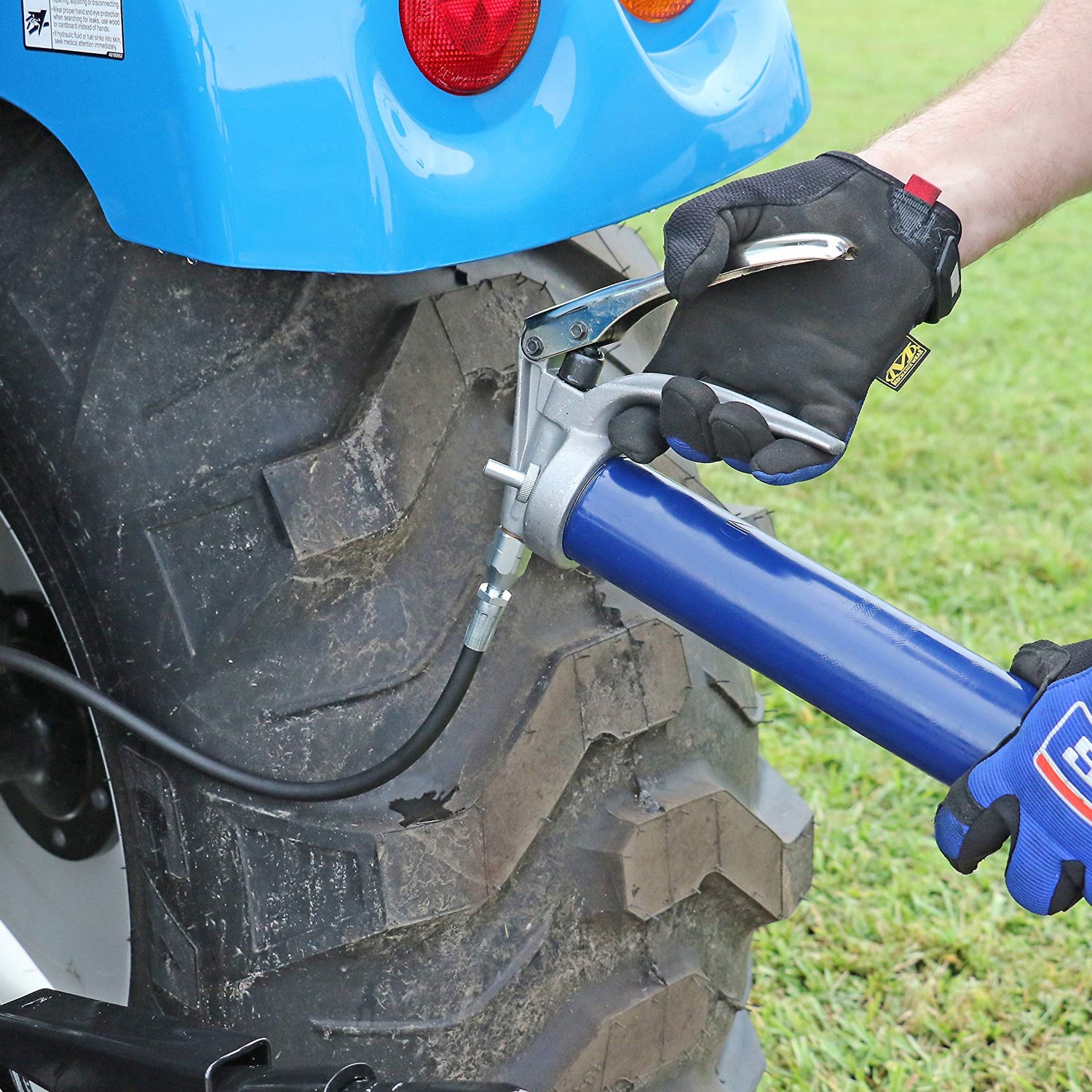 - VERSATILE GREASING OPTIONS: Equipped with an 18" whip flex hose, 6" rigid extension, and a premium dual lip follower, this grease gun is designed for versatility. Lubricate hard-to-reach areas in cars, trucks, and machinery with ease