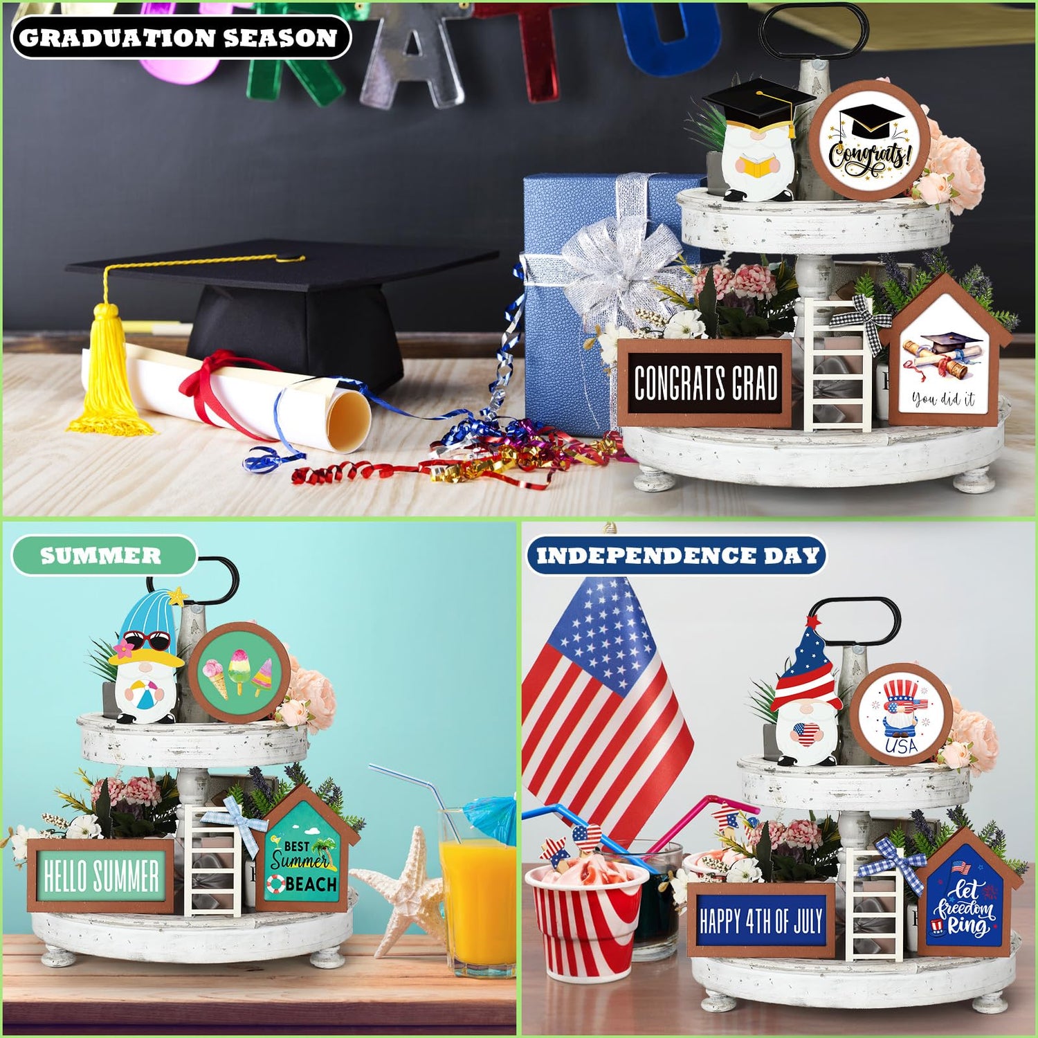 - Interchangeable Designs: easy to switch out decorations for seasonal changes, our interchangeable tiered tray set has 12 seasonal card prints to accompany you through every wonderful holiday, such as Valentine's Day and St. Patrick's Day, Easter, Spring, graduations, July 4th, Summer and Fall decorating to Halloween and Christmas, as well as some other popular home designs