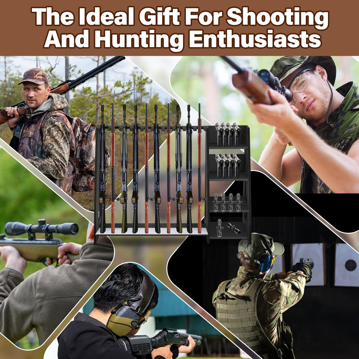 - Packing List: this gun rack is the ideal solution for storage; The package includes a hardwood gun rack, beautifully designed to hold and display up to 10 long guns and 8 handguns; Additionally, 2 storage shelves are incorporated into the design, providing a dedicated space to store various gun parts