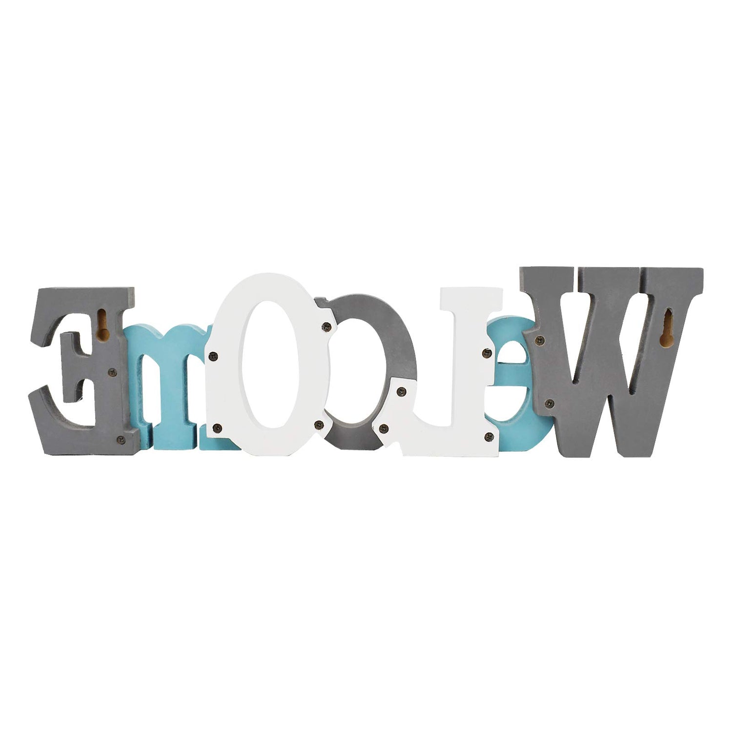 - MULTI-PURPOSE WOOD WELCOME LETTERS: Decorative word sign come with flat bottom for freestanding and two mounting holes on its back. It' s great to use as freestanding welcome sign word decor or hanging word sign.