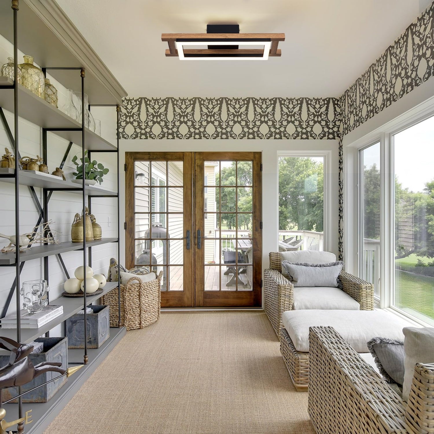 • MODERN DESIGN: This dark wood color square LED ceiling light is hardwired and consists of three layers of materials: black metal ceiling plate, rectangular wooden frame and 3000K LED. It is unique and design, a very beautiful decoration in your home. The soft light brings a sense of cozy atmosphere to your home.