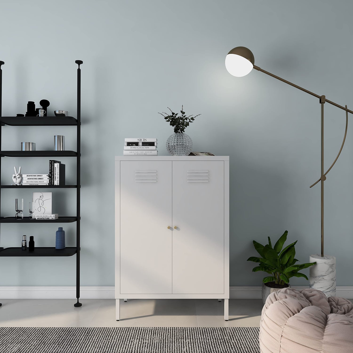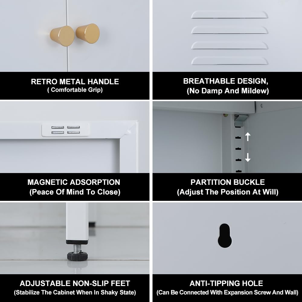 LINGZOE 2 Door Metal Locker Storage Cabinet with 2 Adjustable Shelves,Steel Locker Cupboard for Bedroom, Bedside, Office Room