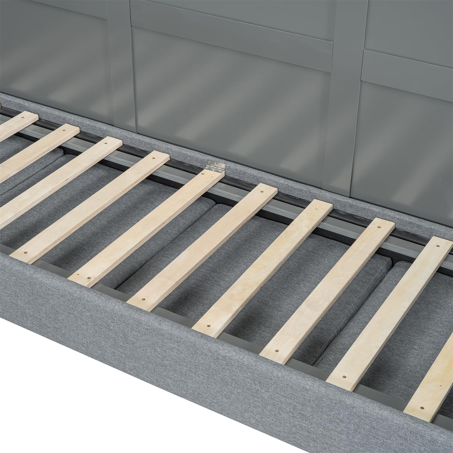 Linique Queen Size Murphy Bed with Sofa and Top Shelf, Horizontal Wall Bed, Versatile Convertible Wooden Bed Frame, Grey