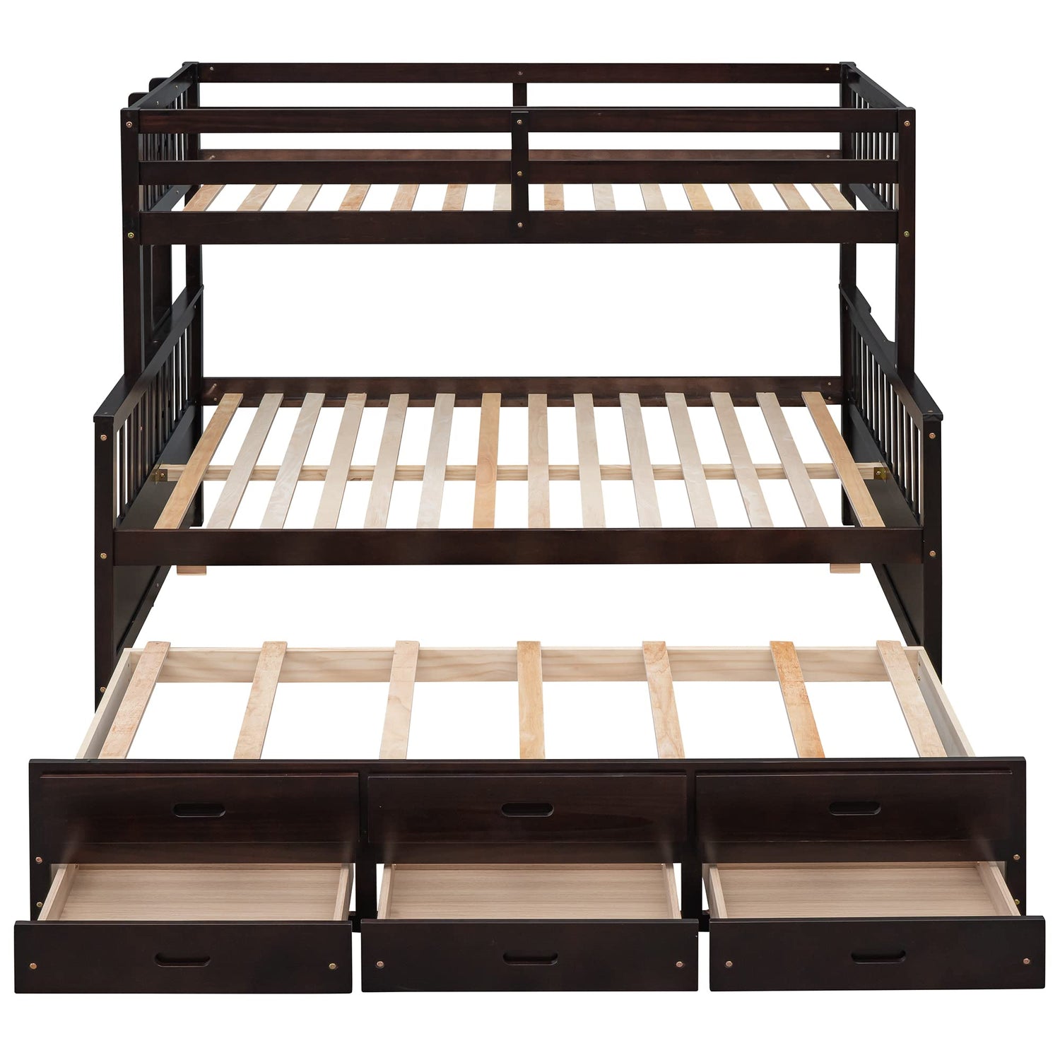 Linique Espresso Twin-Over-Full Bunk Bed with Trundle and 3 Storage Drawers