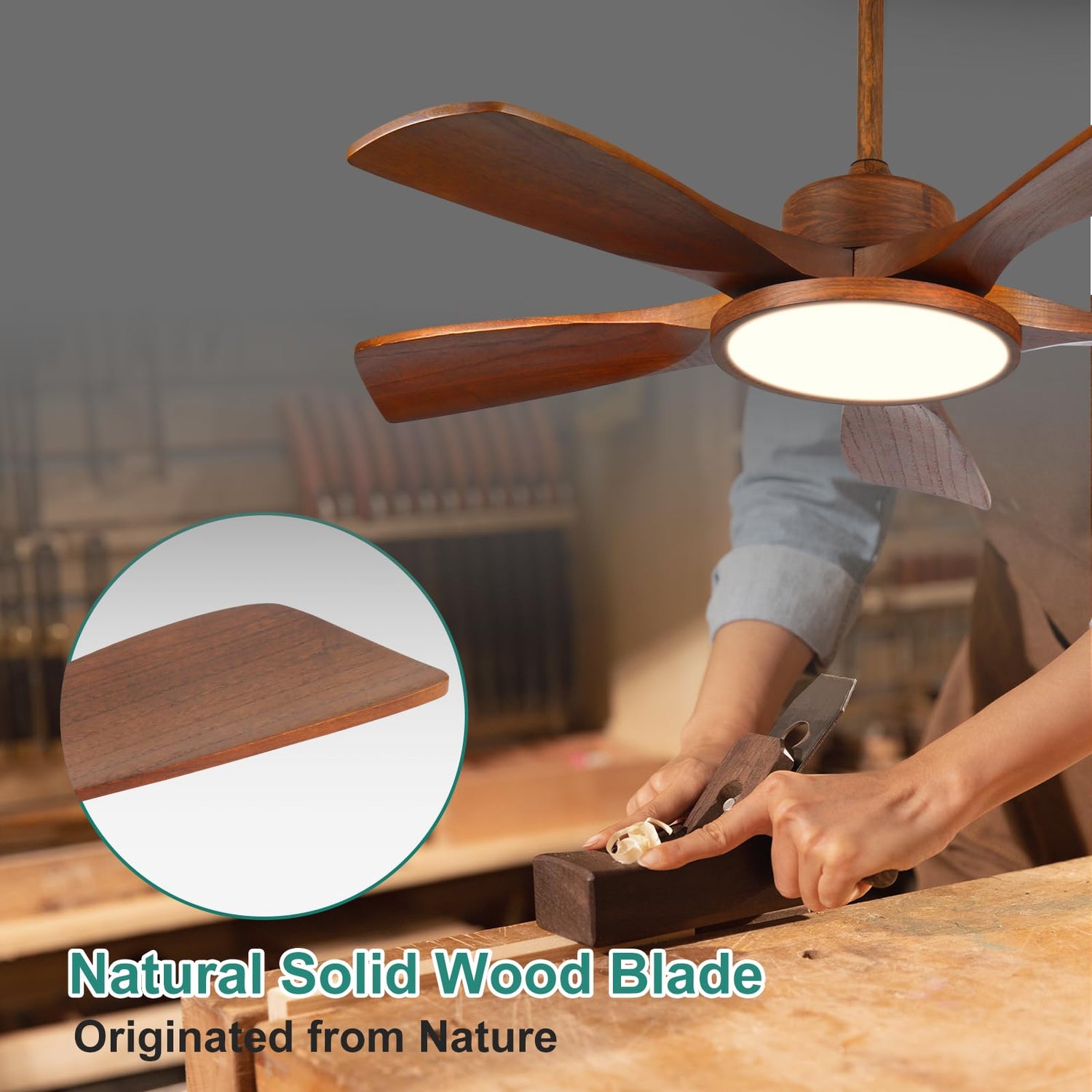 LINJO Outdoor Wood Ceiling Fan With Lights and Remote Control 5 Solid Wooden Blades 42 Inch Modern Farmhouse Ceiling Fan Light for Patios Living Room FCC Reversible DC Motor