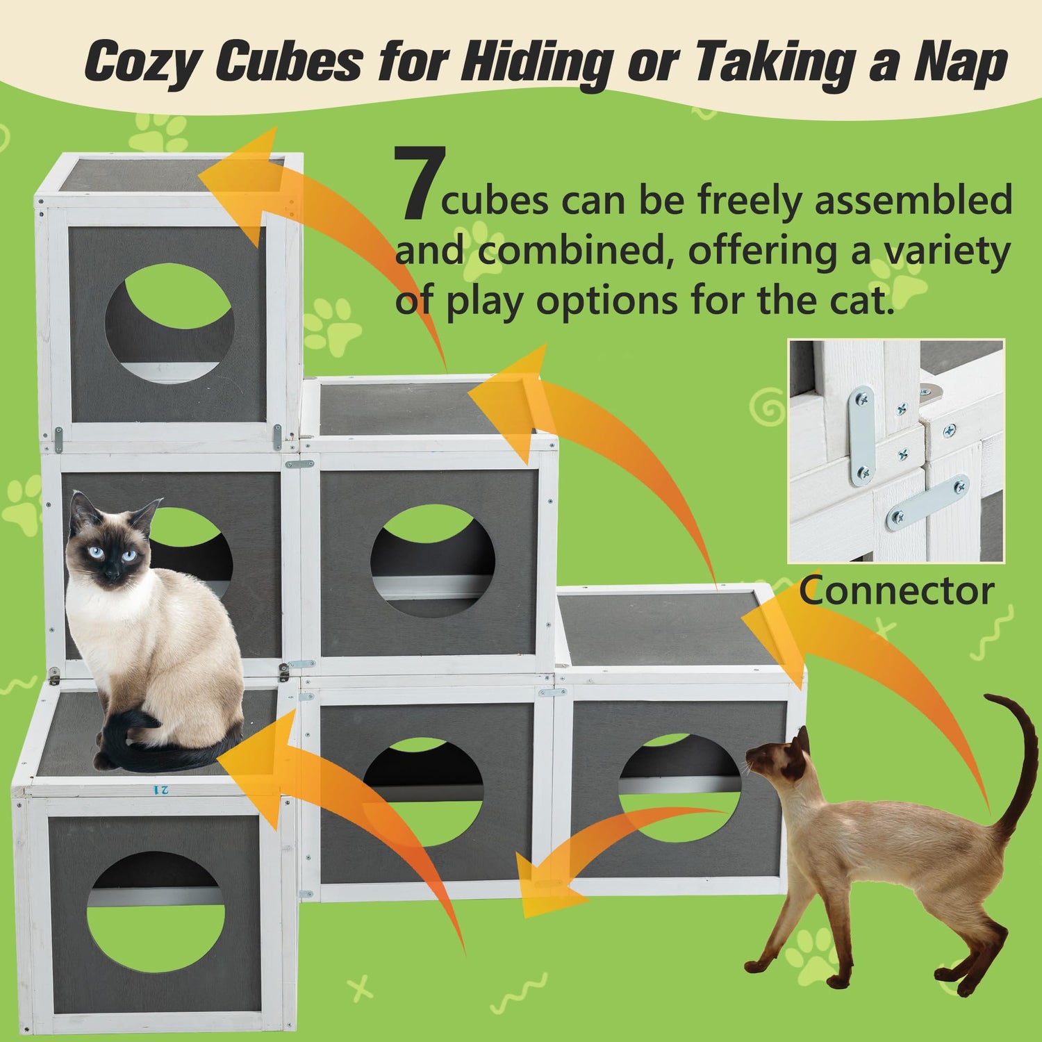 - Luxury & Spacious Area: Boasting an impressive size of 49.6" x 44.7" x 75.61", this cat enclosure offers 2 large jumping platforms, 7 napping houses, and substantial bottom area. It provides ample space for cats to climb, jump, sleep, and play