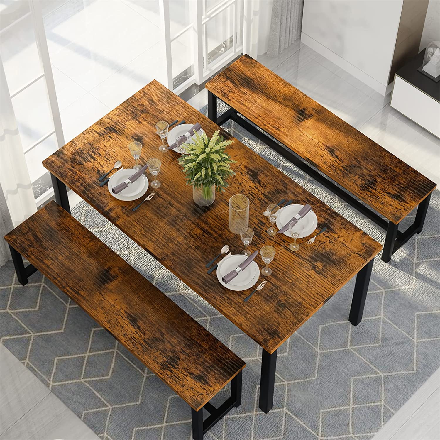 - 【Space-saving Dinner Table Set with Benches】This breakfast table set includes a table (47.2 x 28.7 x 28.7") and two dining benches (41.3 x 11.8 x 17.7"), and two dining room benches can be stuffed in the kitchen table Below to save space, perfect for small spaces, small apartments, kitchenettes, small studios and more.