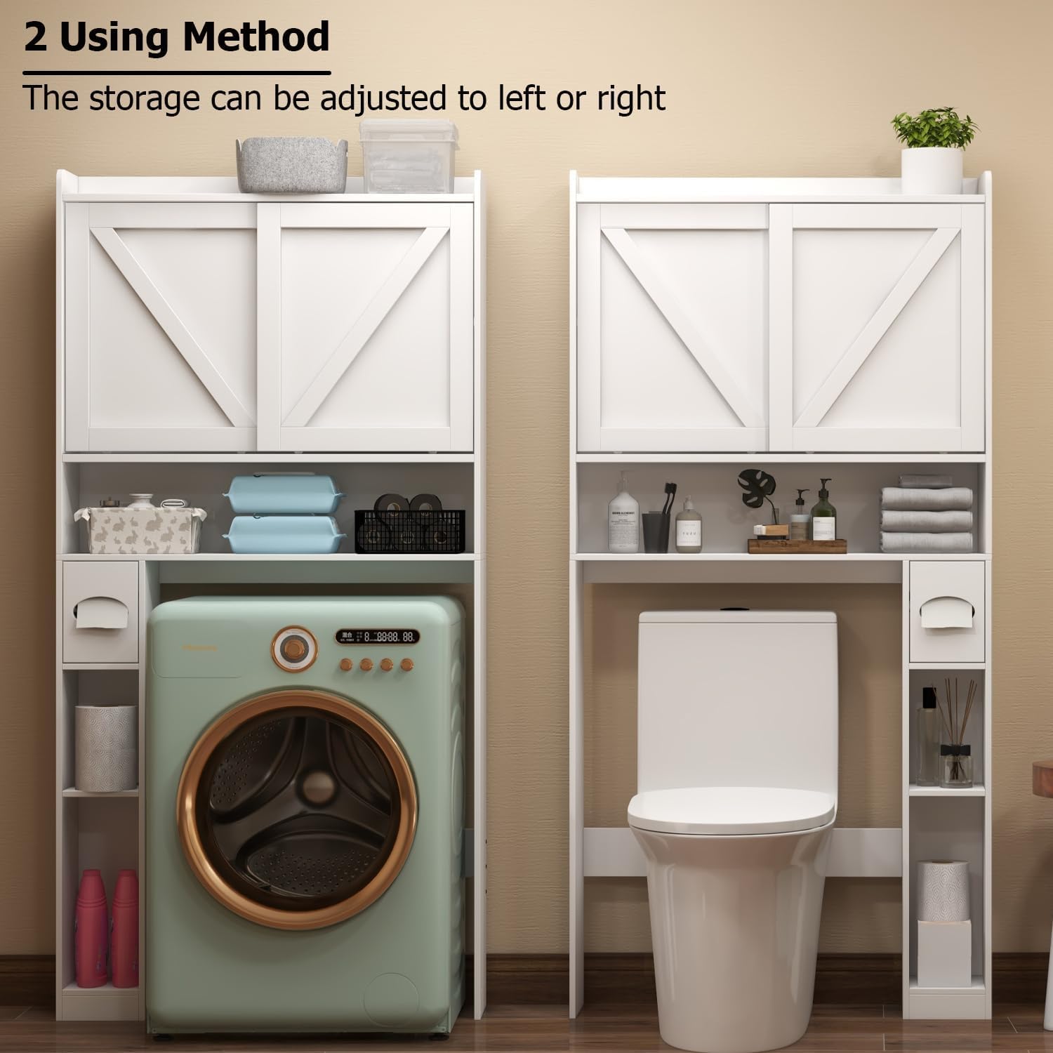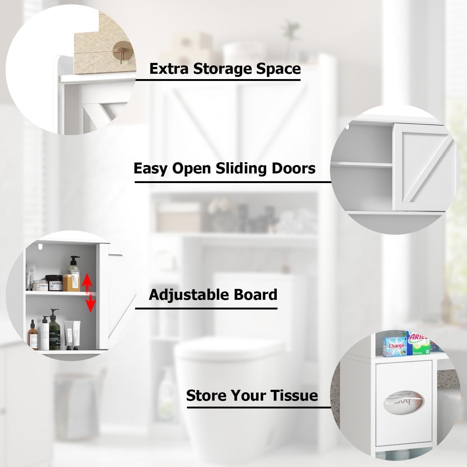 LINLUX Over The Toilet Storage Cabinet, Farmhouse Storage Cabinet Over Toilet with 2 Sliding Doors, Home Space-Saving Toilet Rack for Bathroom, Laundry, White