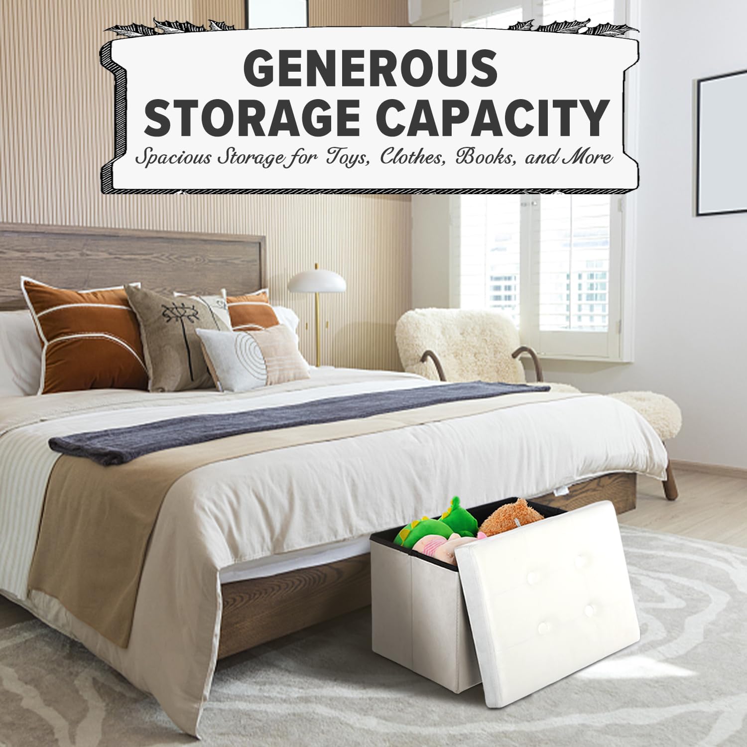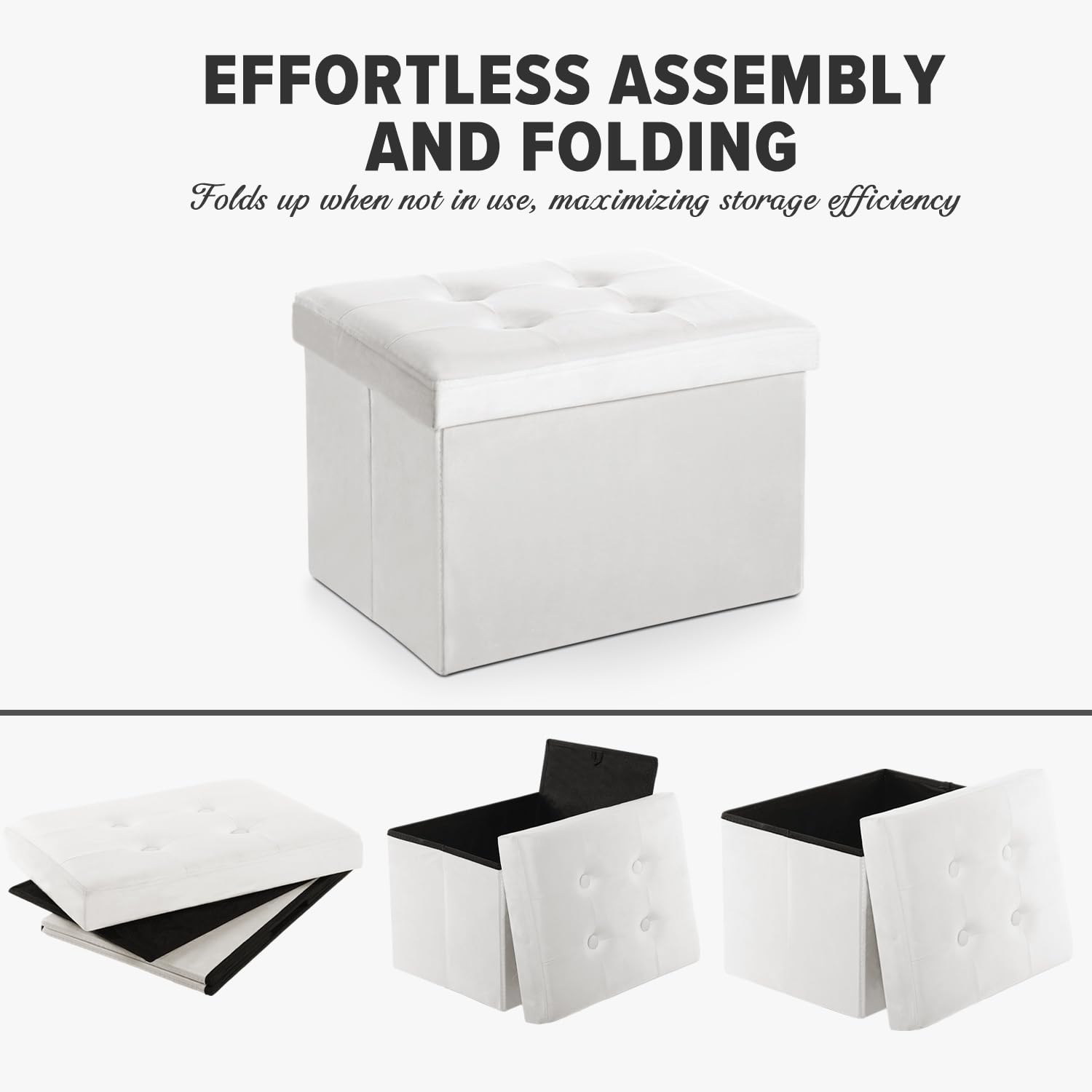 - 【Large Storage Space】 It is made of high quality fiberboard frame, so you can sit on it with confidence. It's perfect for your bedroom or living room. Whether used as a under desk foot rest or as living room storage, this ottoman foot rest provides maximum comfort. The velvet folding footstool serves as a ottoman with storage for living room to store Christmas gifts and children's toys, blankets, cushions, books and sports equipment. It helps to keep the room organized and neatly hide clutter
