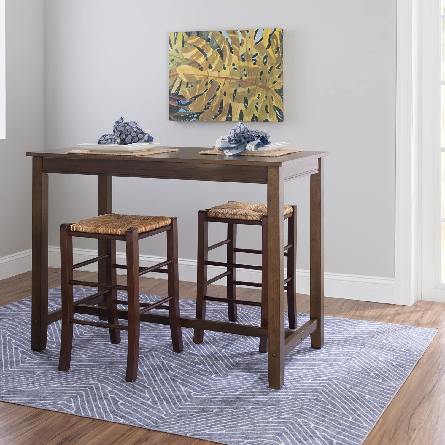 Details: Our most popular counter height stools now have a coordinating counter table. Perfect for providing a gathering, dining or desking space to your den or living areas. Solid wood base and wood veneer top in a rustic brown finish. Be sure to match with stools that have a seat height of 24 to 28" to provide enough leg room. Flexible and durable enough to be used in the dining room, living room or as extra kitchen counter space. Pair with the Claridge Rustic, Natural, or Linen Striped Counter Stool for a perfect set.