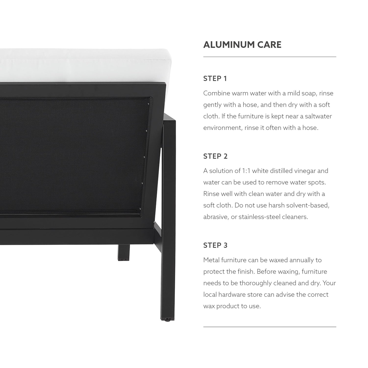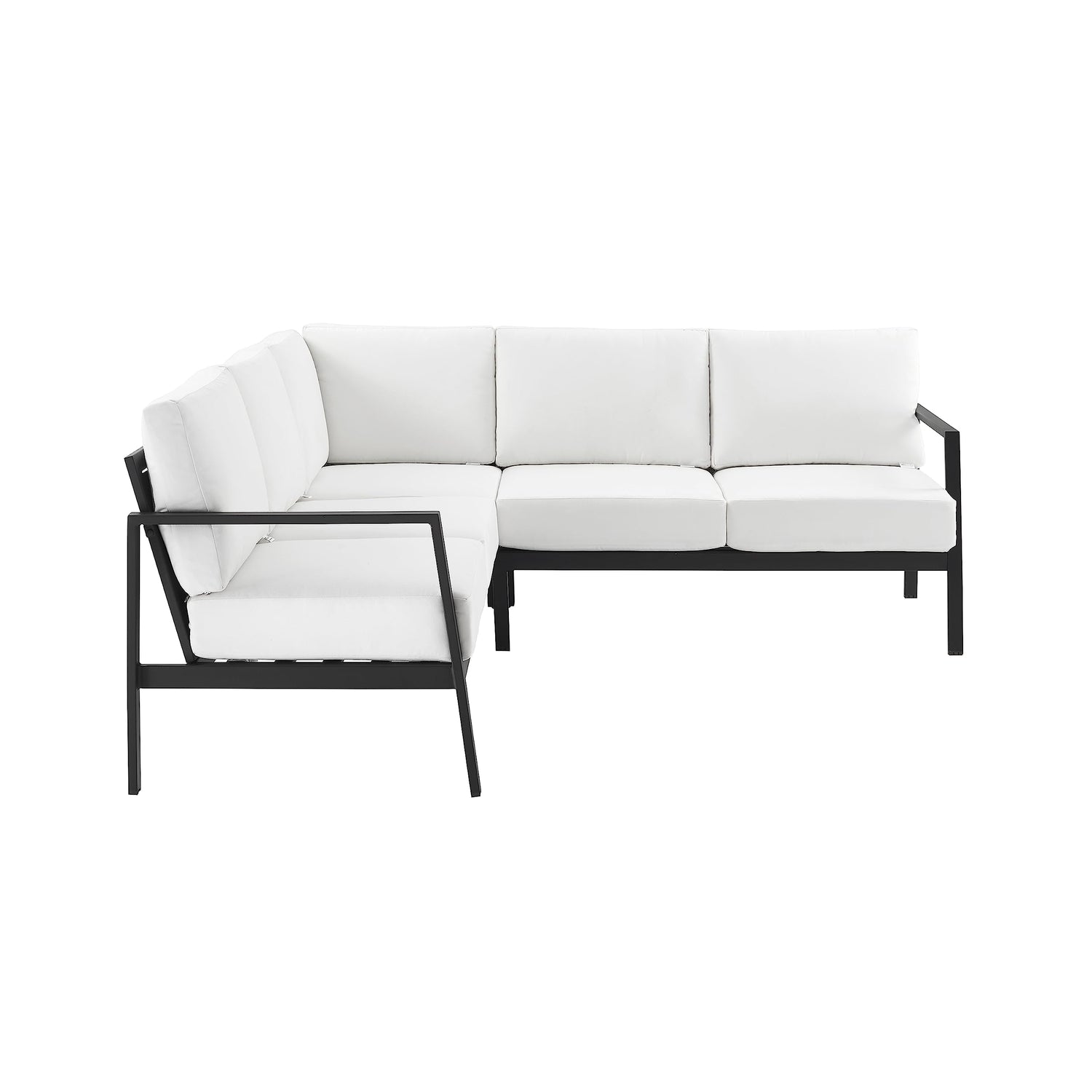Linon Greyton Black Aluminum Frame Outdoor Sectional with White Removable Cushions