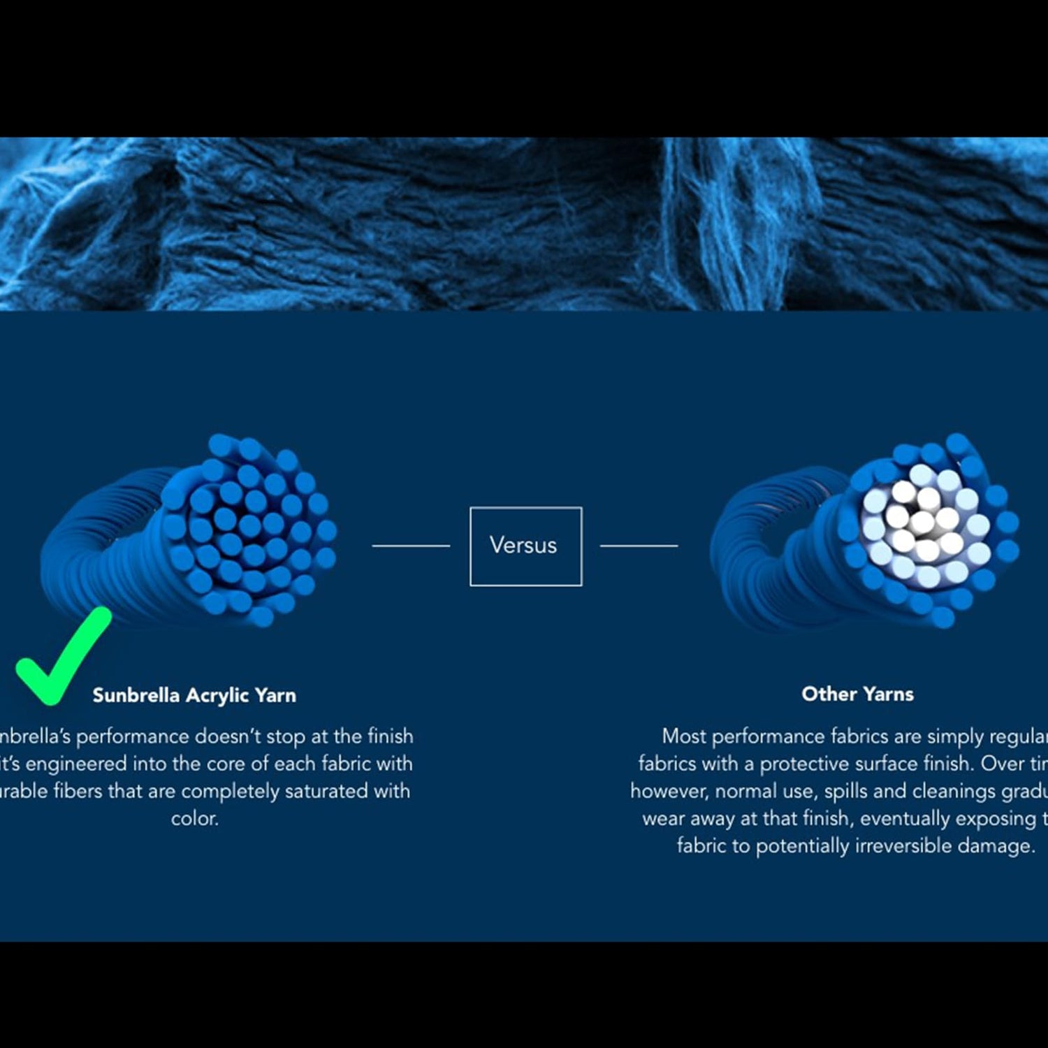 - Upholstered in White Sunbrella performance fabric that combats weathering, fading, and stains to ensuring long term durability and value.