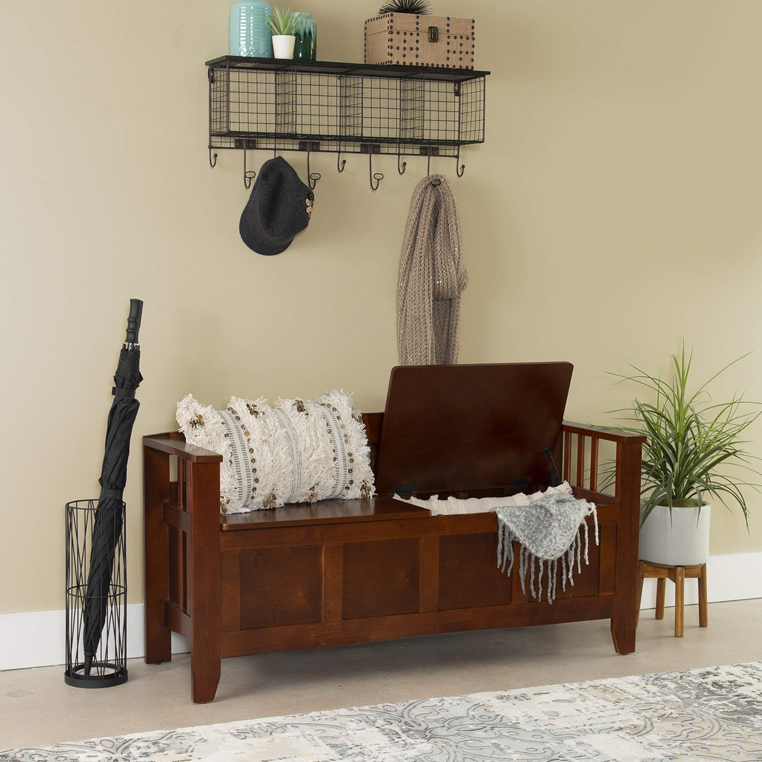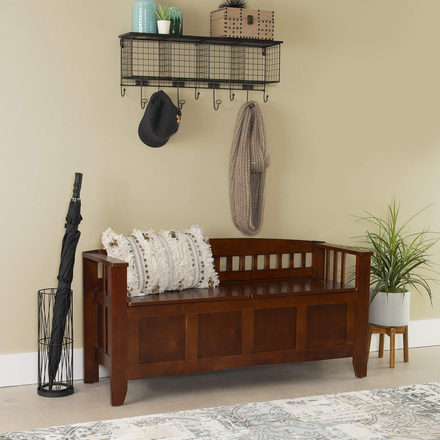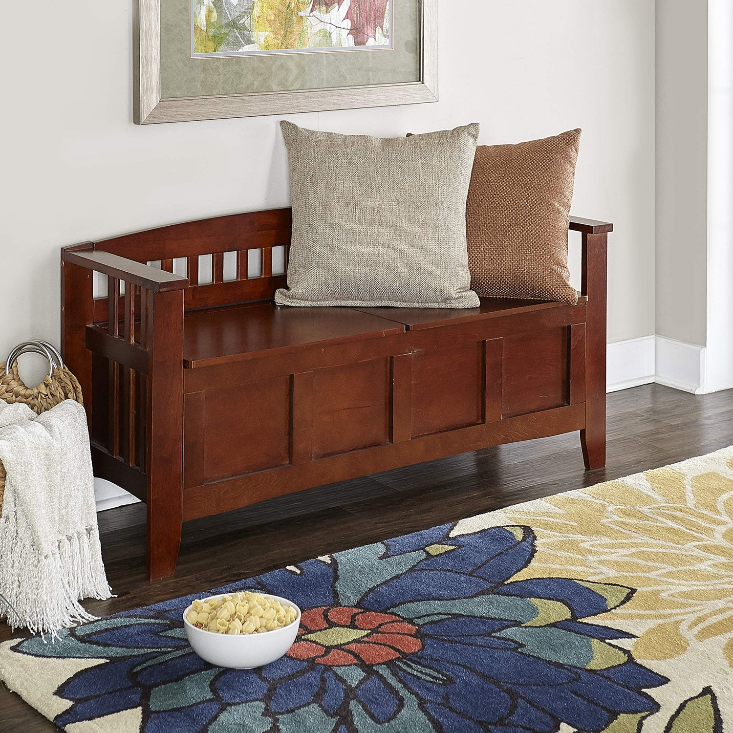 Linon Walnut Split Seat Storage Bench for Foyers and Mudrooms