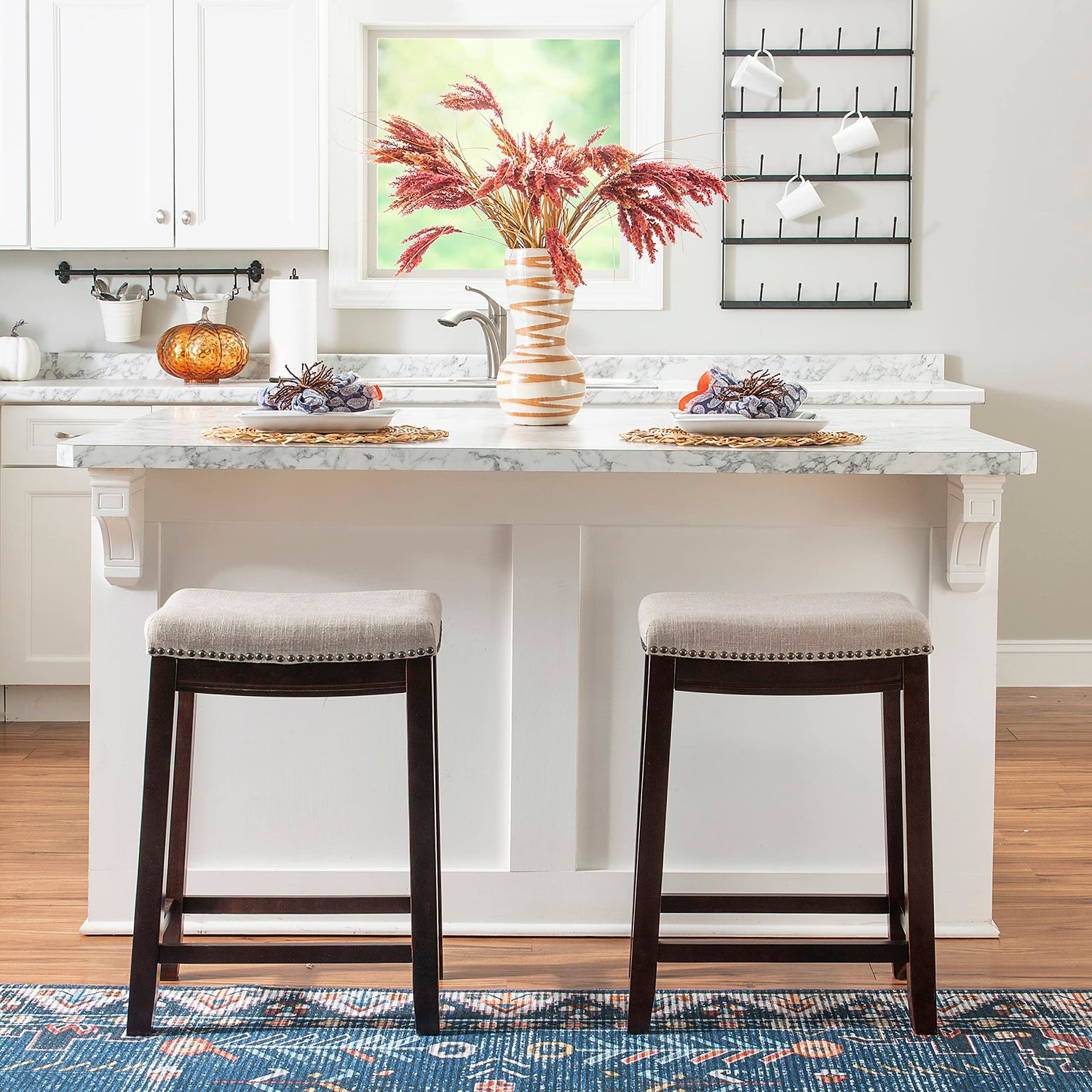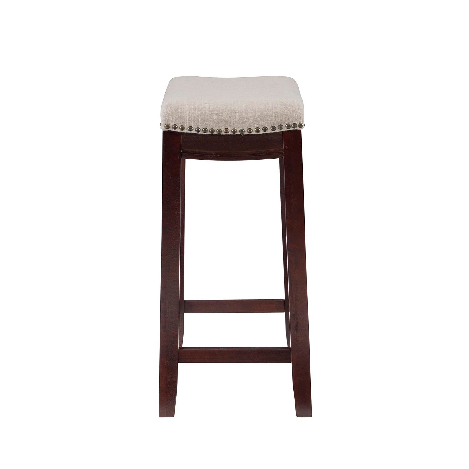 Linon Linen Backless Claridge Stool, Counter Height, Beige & Dark Walnut
