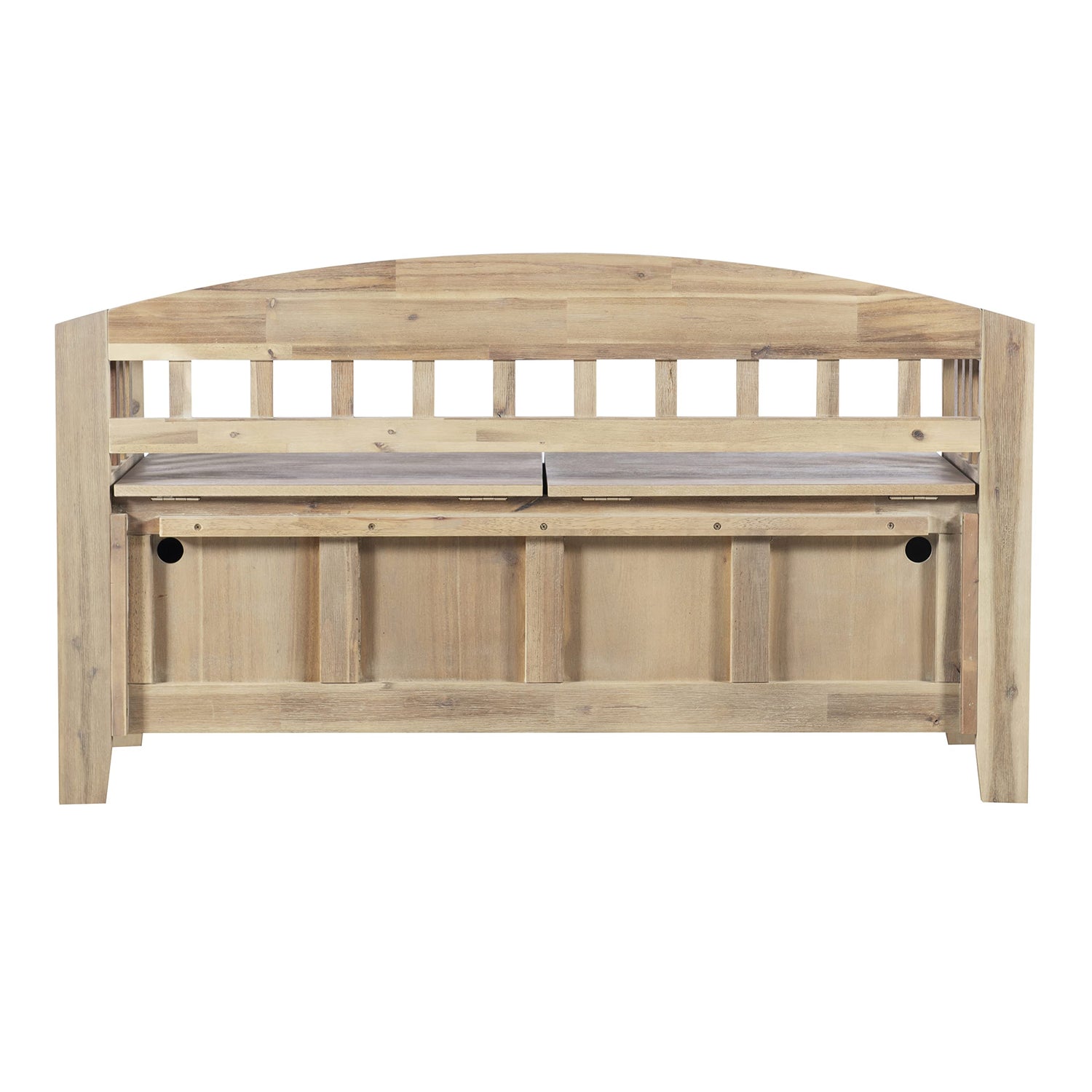 Details: Update your home with a rustic look with the frankie storage bench. Perfect for adding to an entryway, hall or Mud room, the bench features a split seat design. Storage beneath the seat is ideal for keeping coats, shoes and bags hidden. The natural washed finish allows the piece to blend seamlessly into any home.